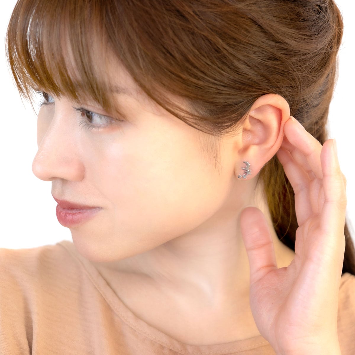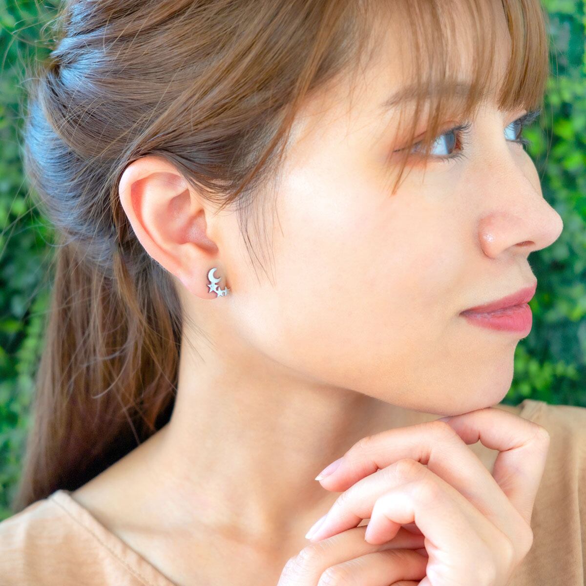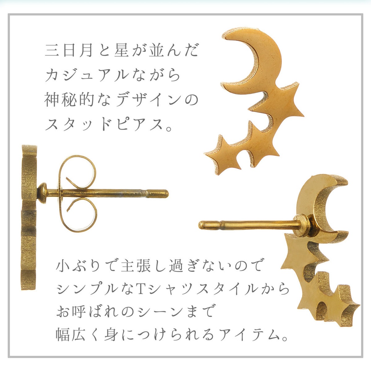 三日月に寄り添う小さな星たちが、耳元でさりげなくきらめきます。