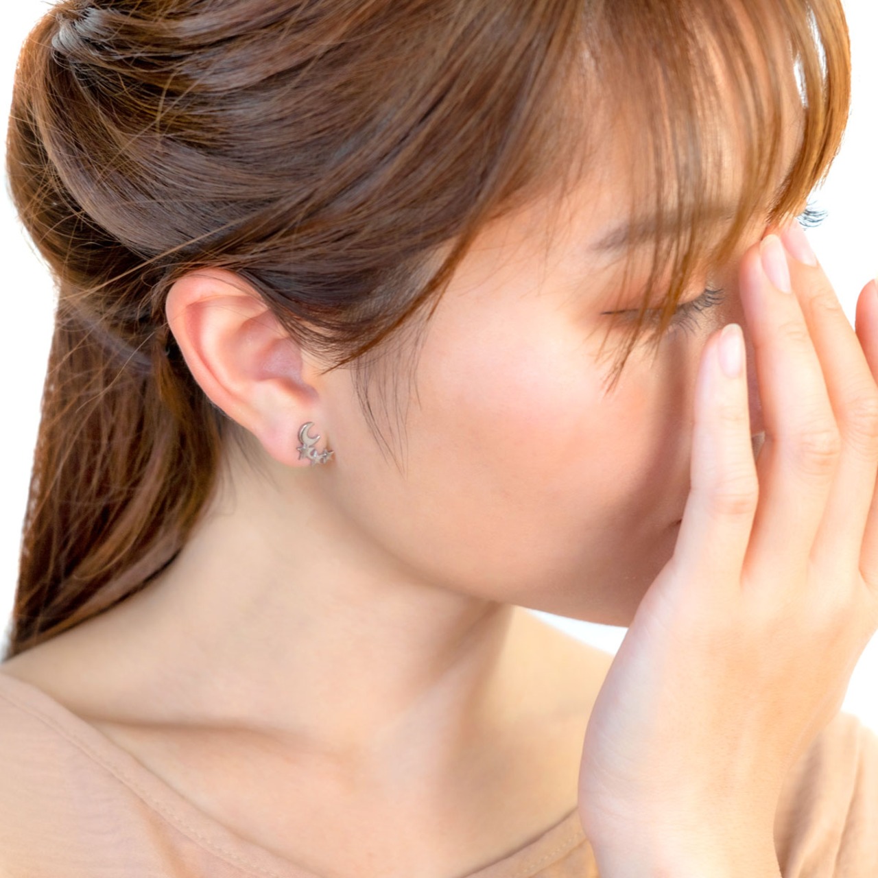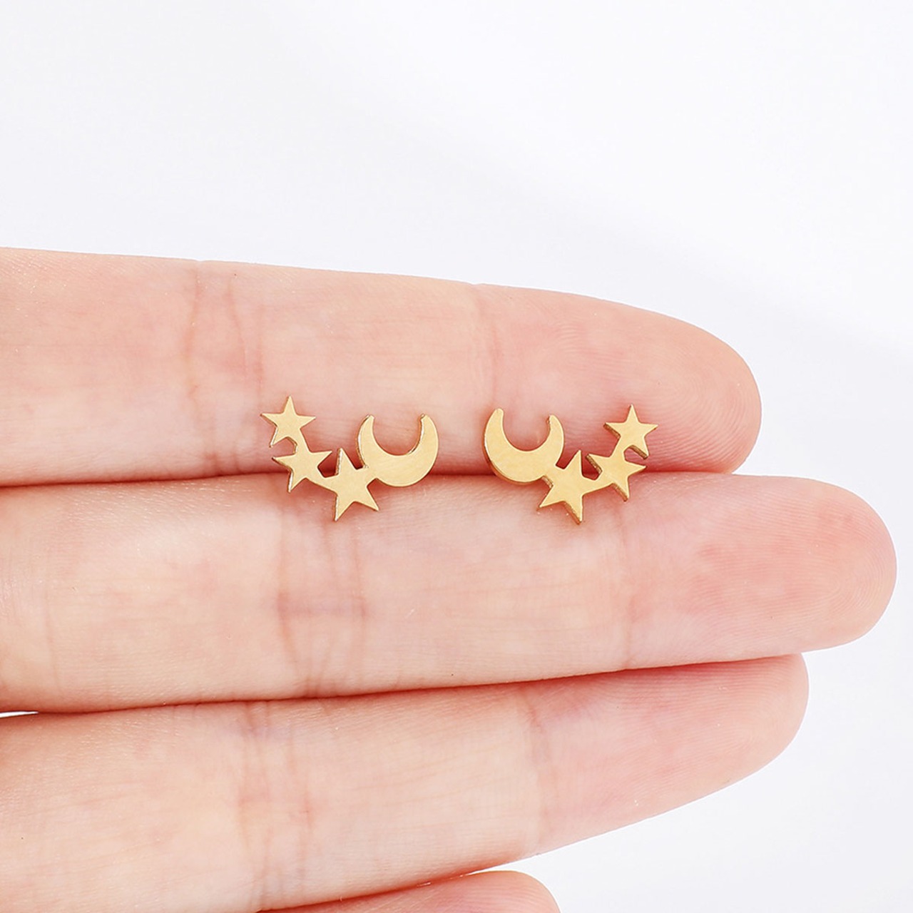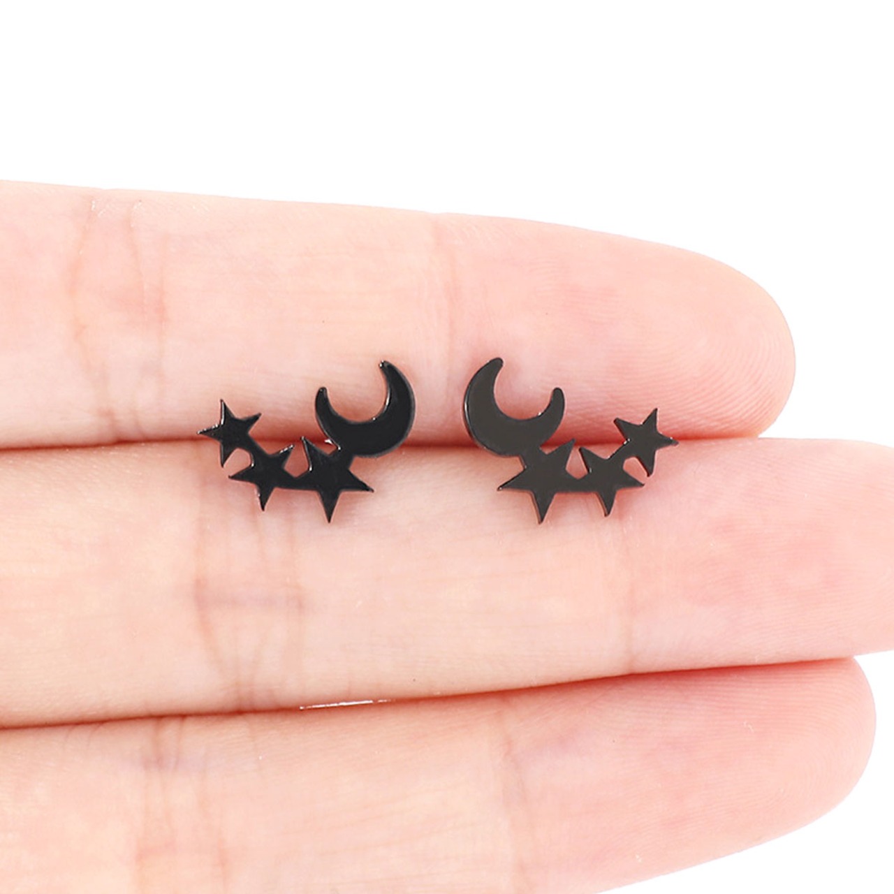 三日月に寄り添う小さな星たちが、耳元でさりげなくきらめきます。