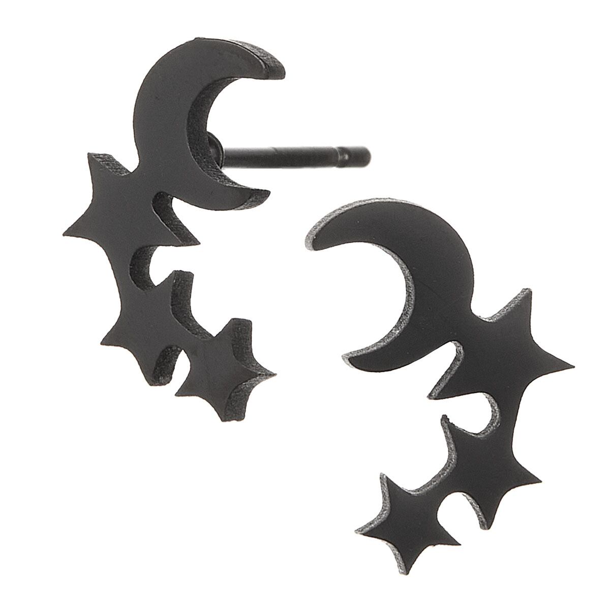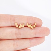 夜空をイメージした、月と星モチーフのスタッドピアス。