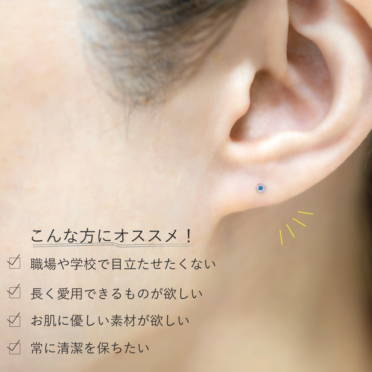 職場オフィスや面接、学校などでピアスを目立たせたくない場合に