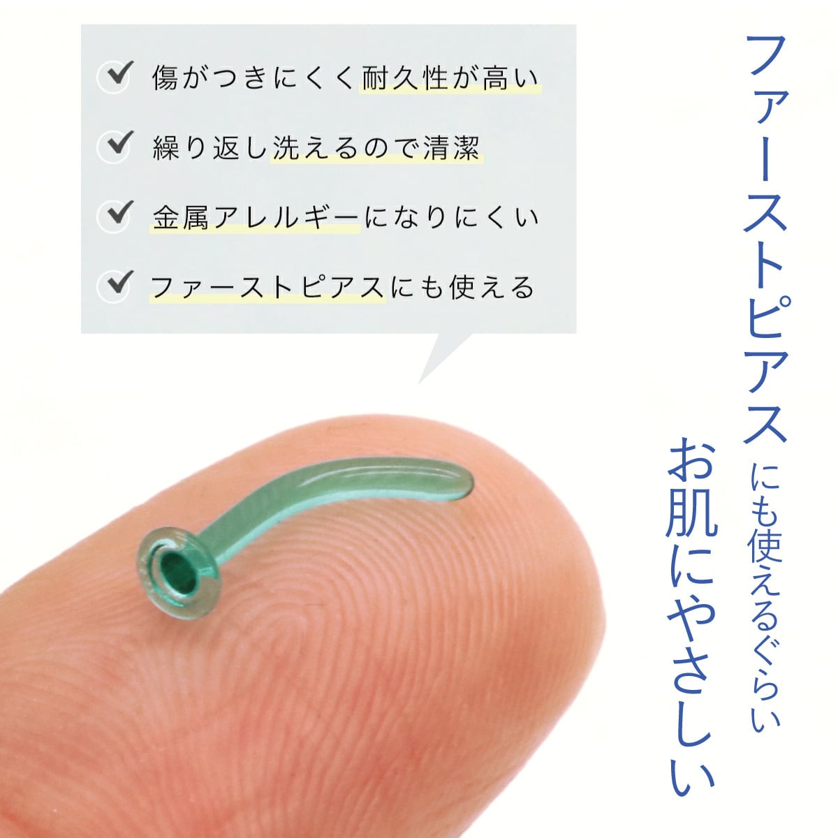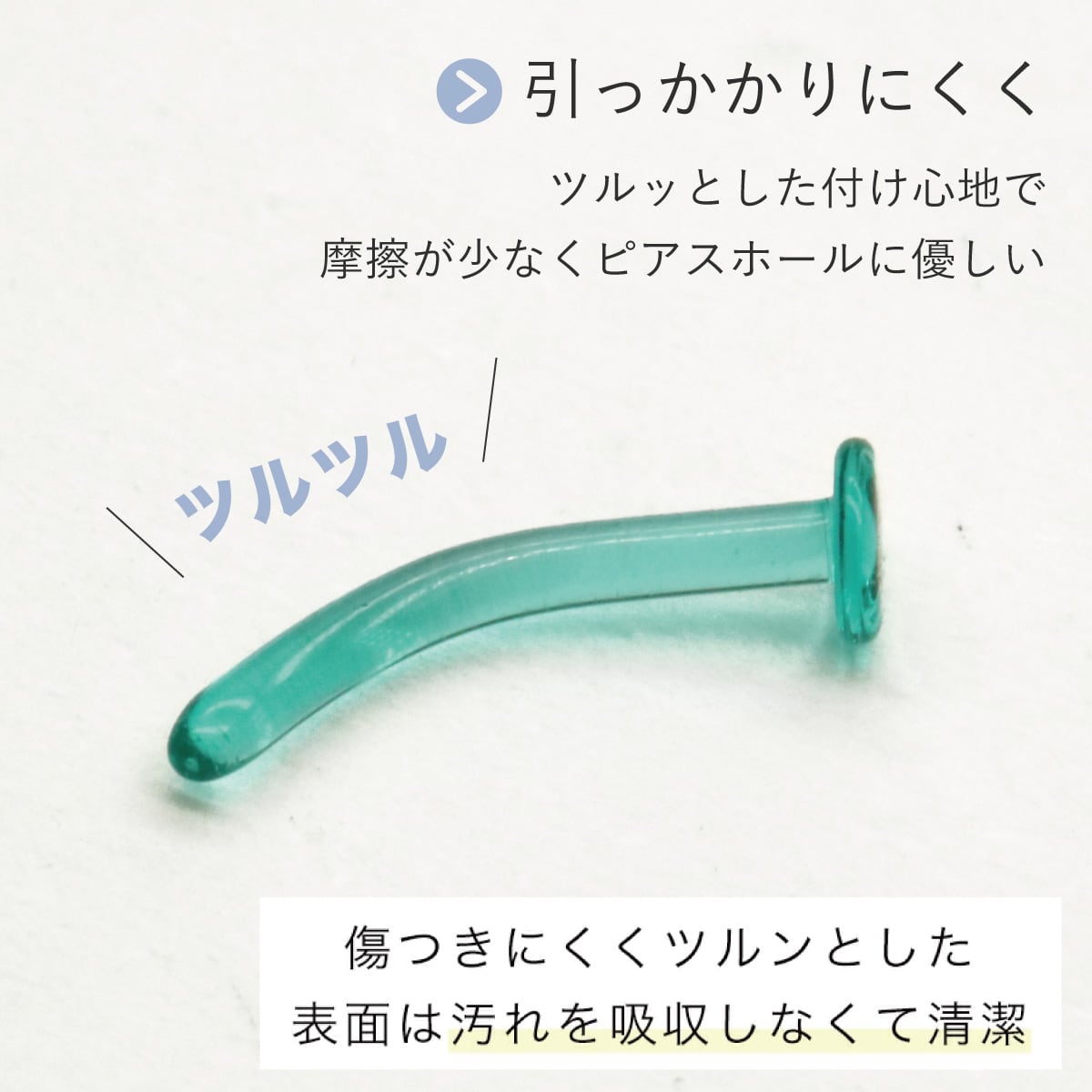 このカーブによって、ピアスを耳に着けたときにポストが