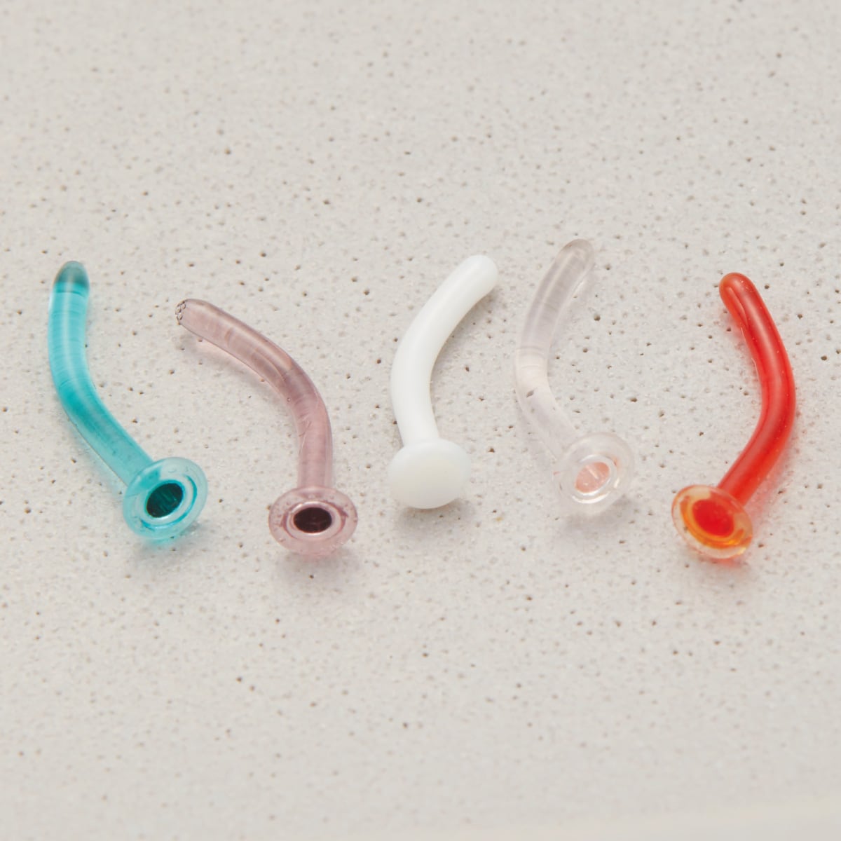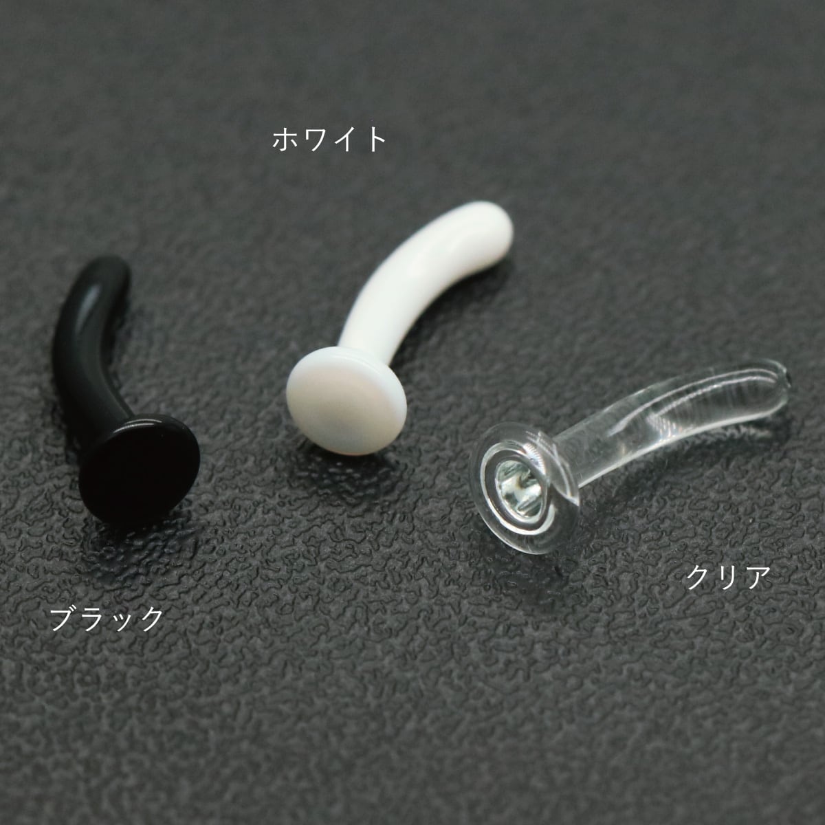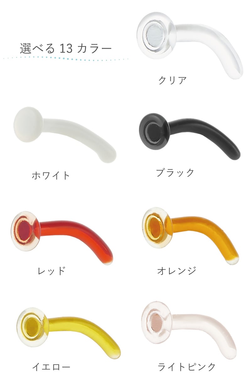 ピアス つけっぱなし naz-care-033 ガラスピアス 強化ガラス 金属アレルギー対応 バナナバーベル カーブ へそ 眉 耳たぶ 18G 16G 14G リテーナー 目立ちにくいピアス ボディピアス 学校 職場 福耳用