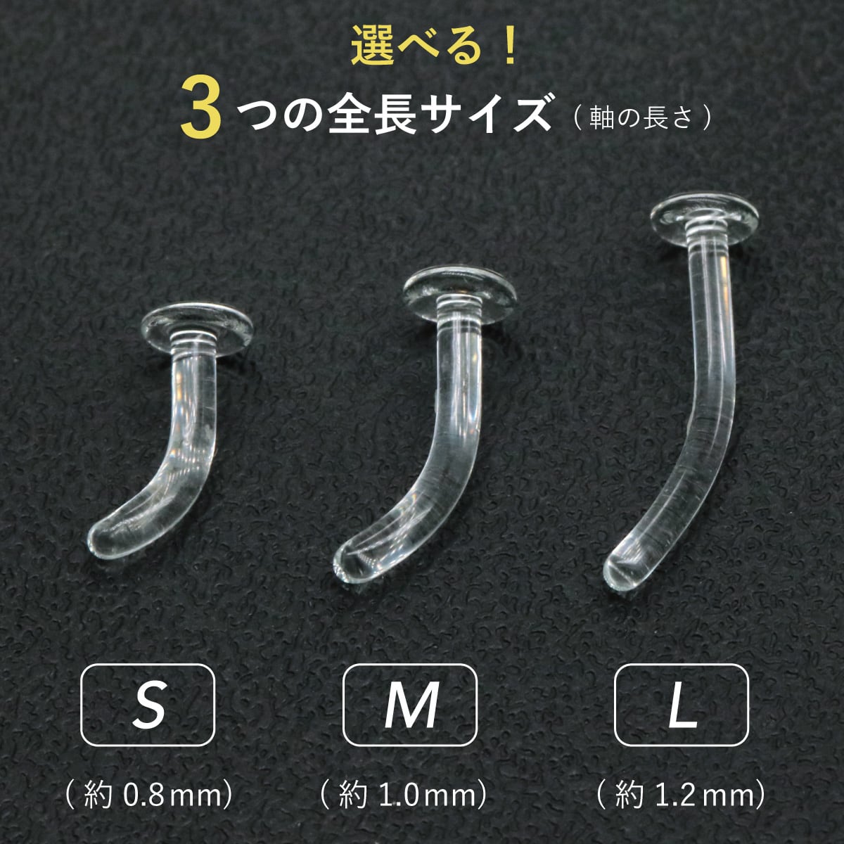長さも3種類選べてロングタイプ(Lサイズ)は約12mmなので耳たぶが厚い方にもお勧めです。