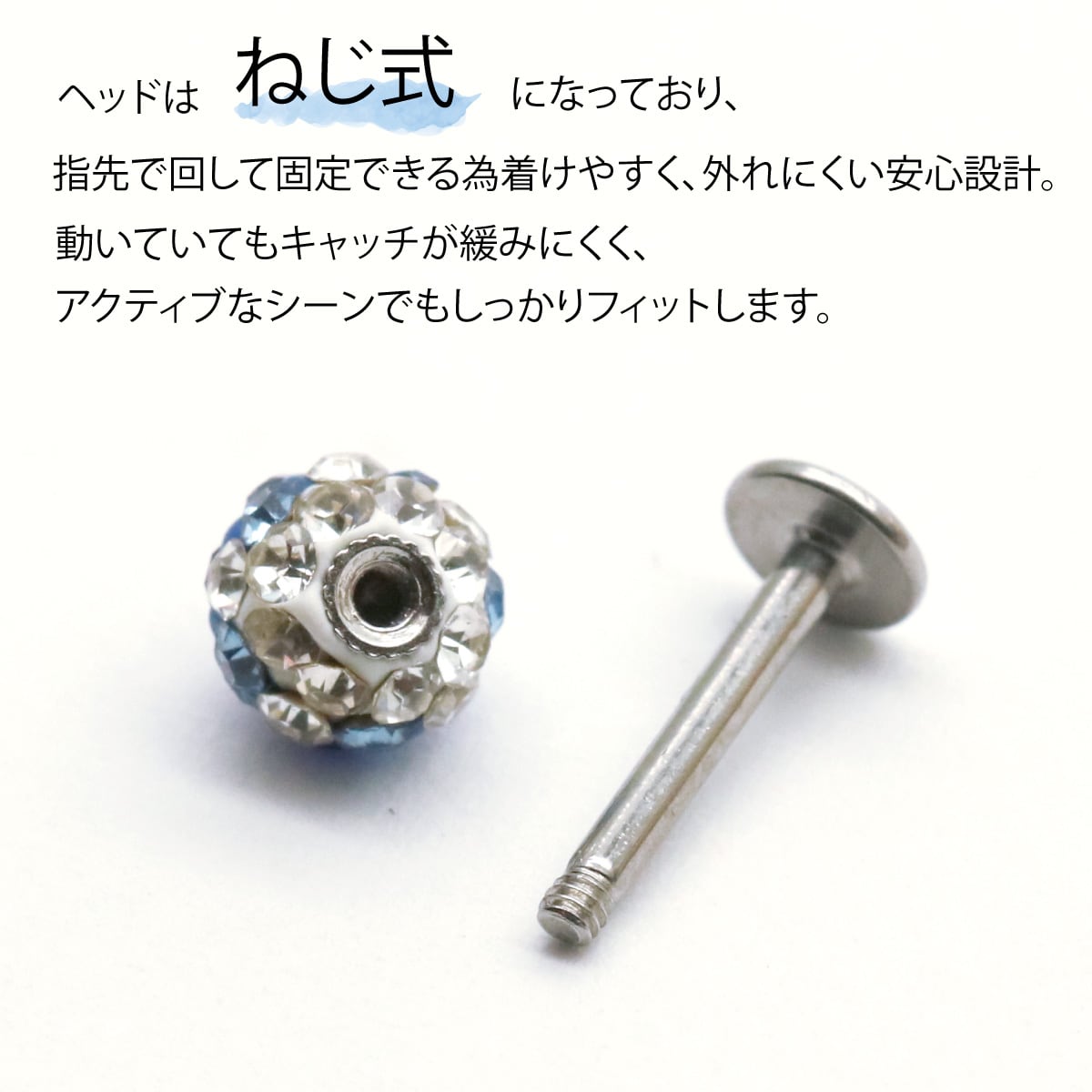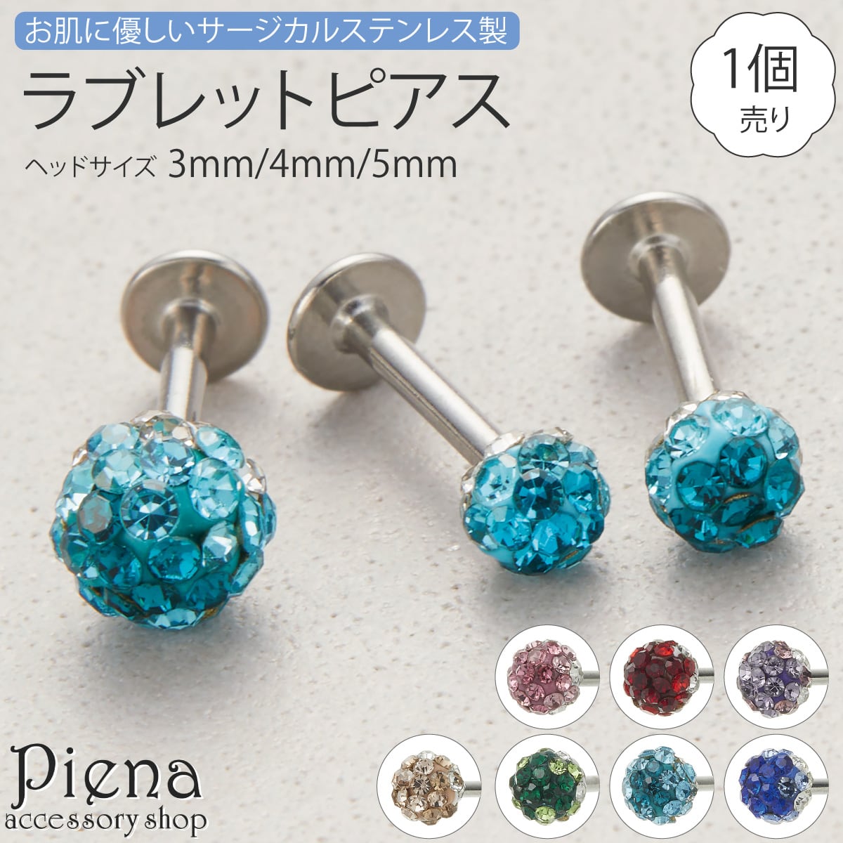 ピアス つけっぱなし ft-0121-6 アレルギー対応 片耳用 1個売り サージカルステンレス製 ラブレットピアス 16G キラキラ 丸型 ボール 選べるヘッドサイズ 3mm 4mm 5mm 金属アレルギー対応