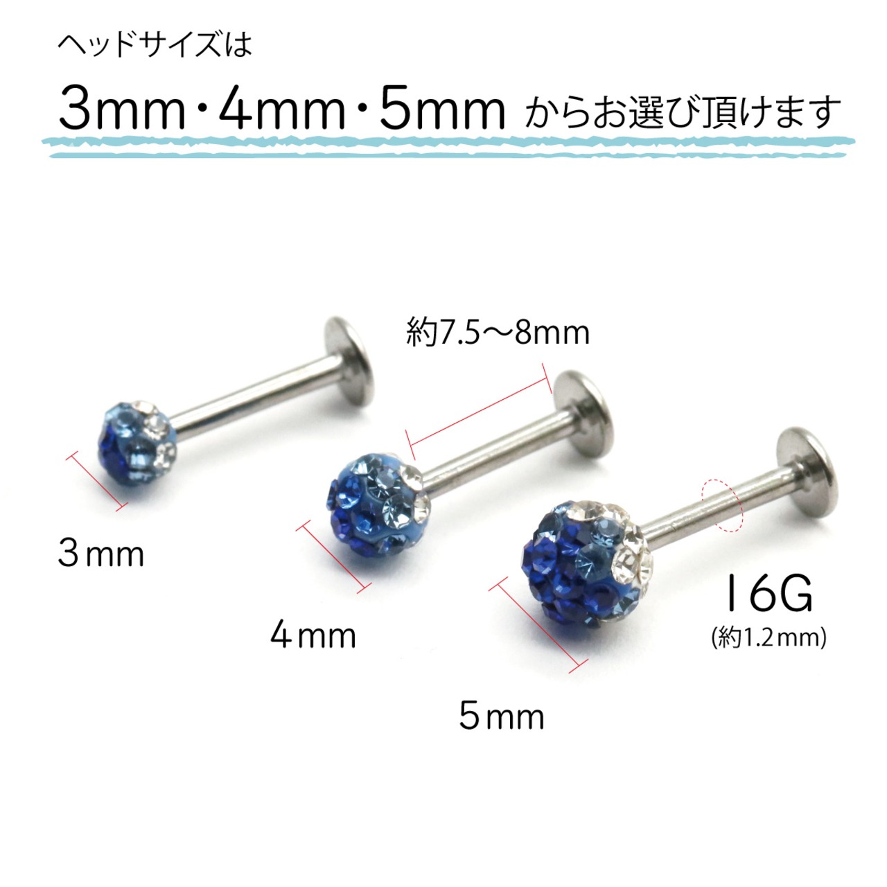 ヘッドサイズ(直径):約3mm、約4mm、約5mm