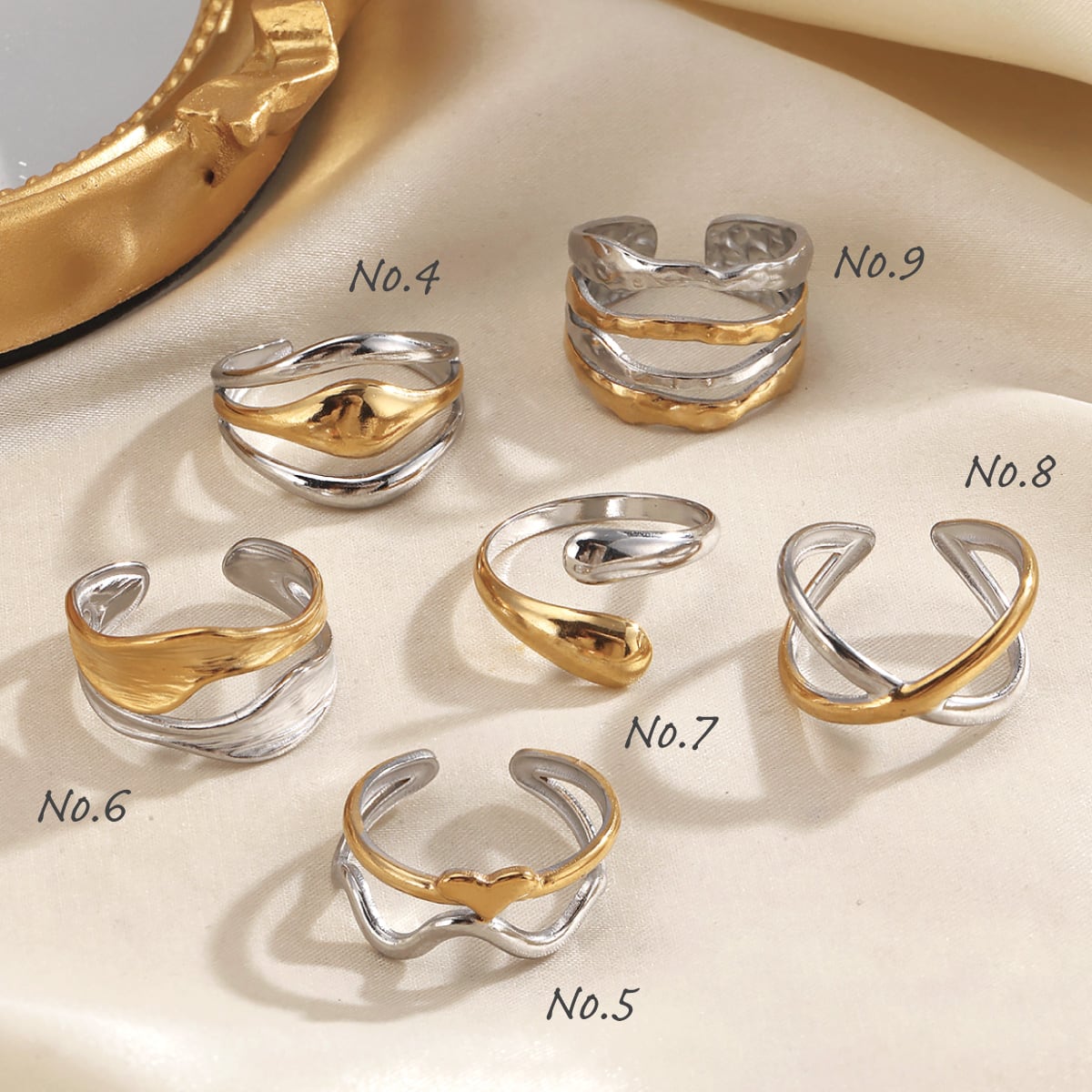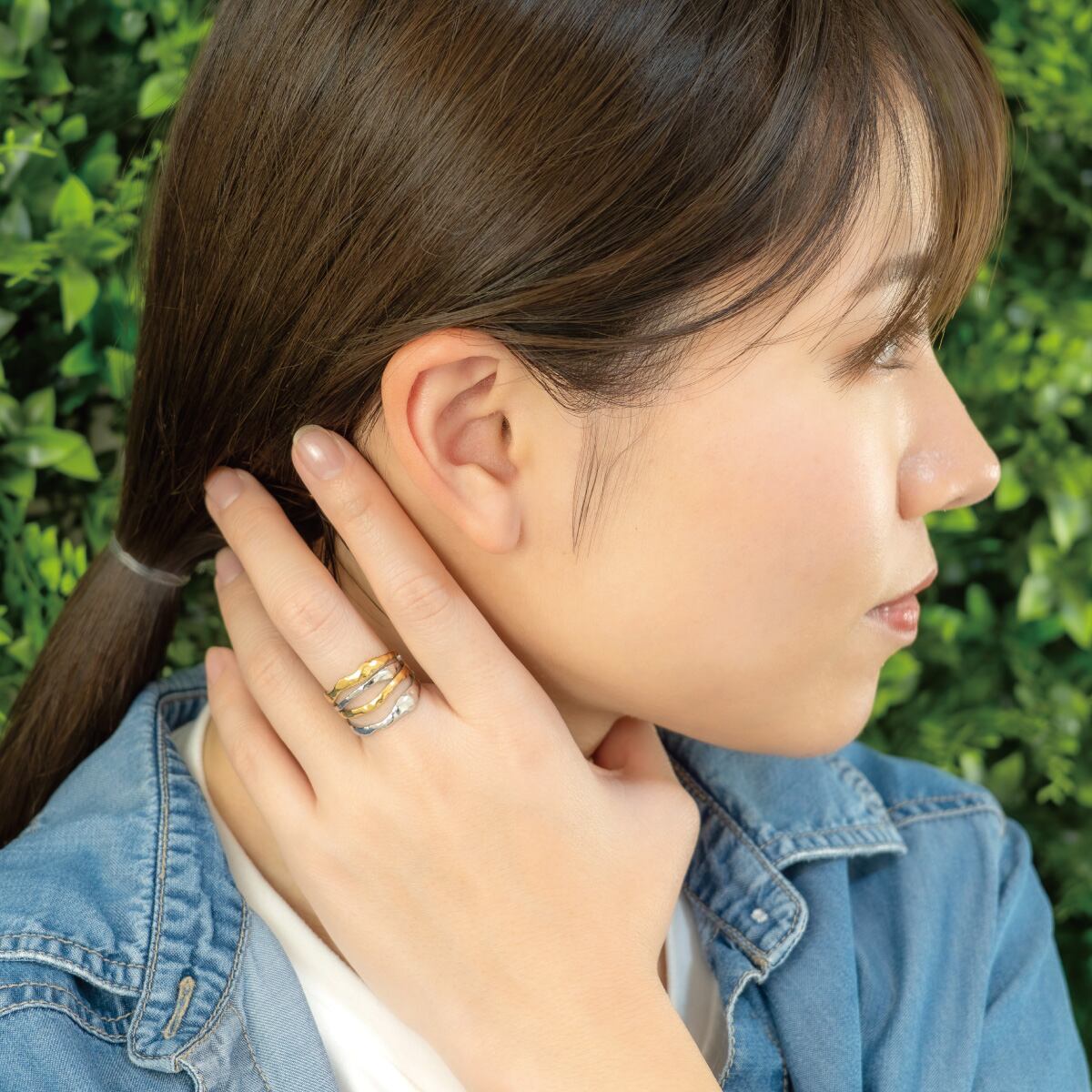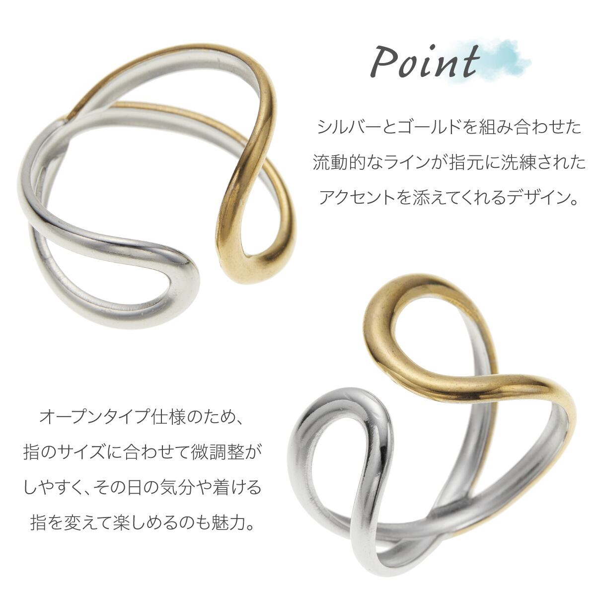 リング レディース ft-0133-12 サージカルステンレス フリーサイズ ニュアンス 配色 バイカラー 抜け感 お肌に優しい 金属アレルギー対応 金アレ 幅広 ワイド 誕生日 記念日 ギフト