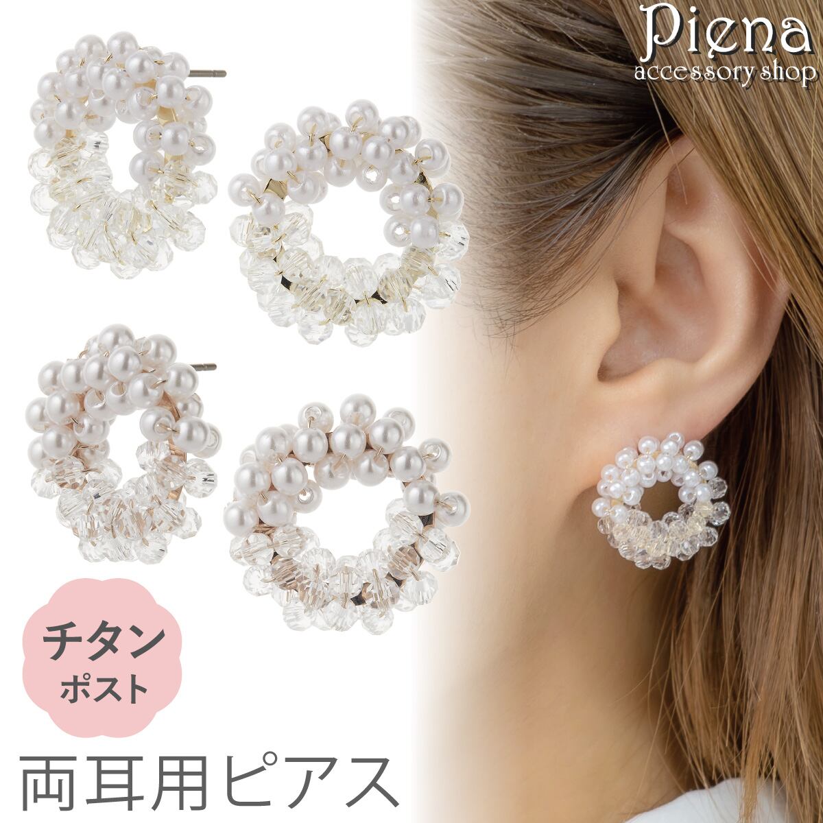 ピアス 金属アレルギー レディース so-60-f5-2-3 チタン製ポスト チタン ピアス ガラスビーズ パール ドレスに合う ラウンド型 かわいい パーティー 結婚式 ギフト メール便送料無料