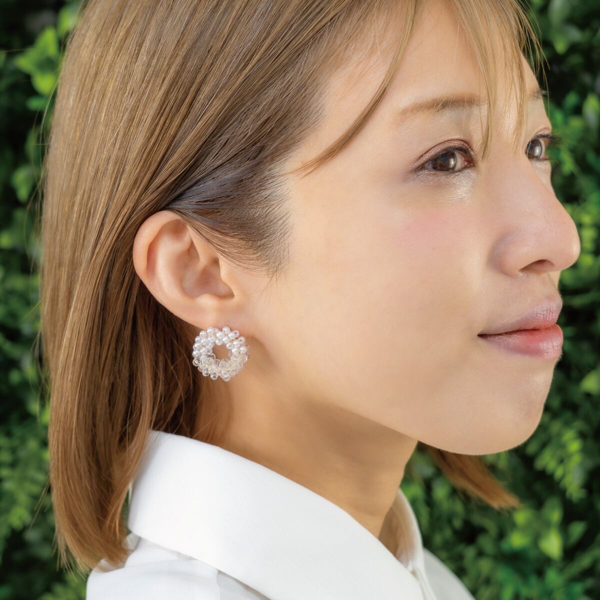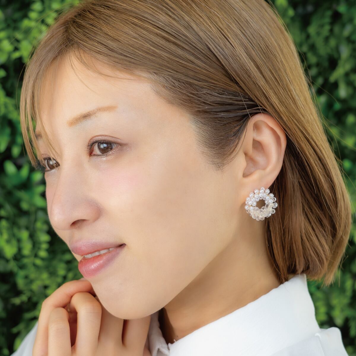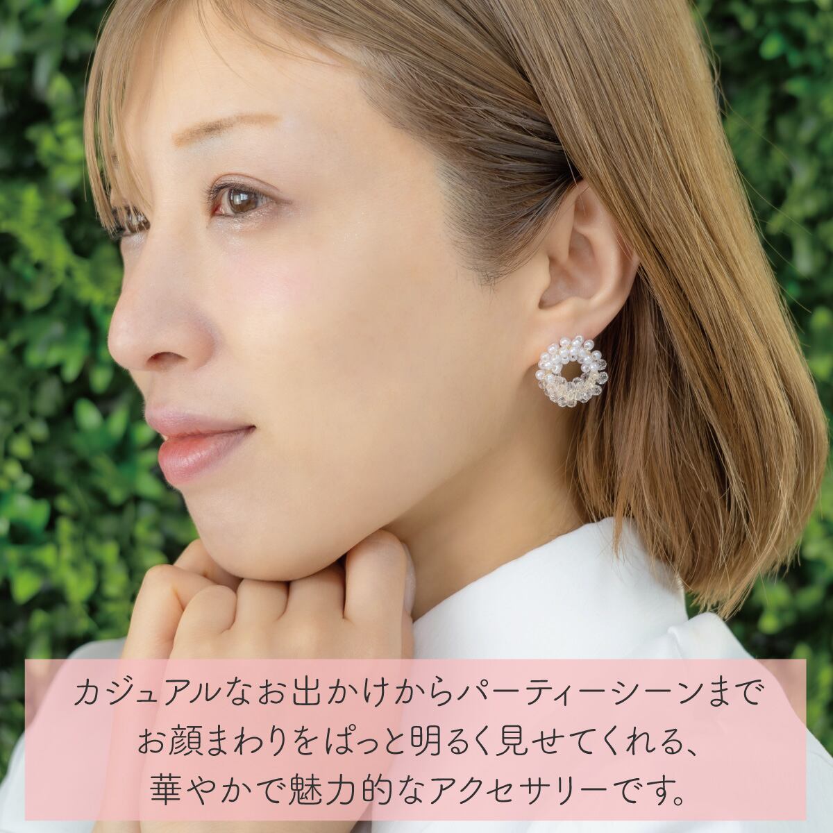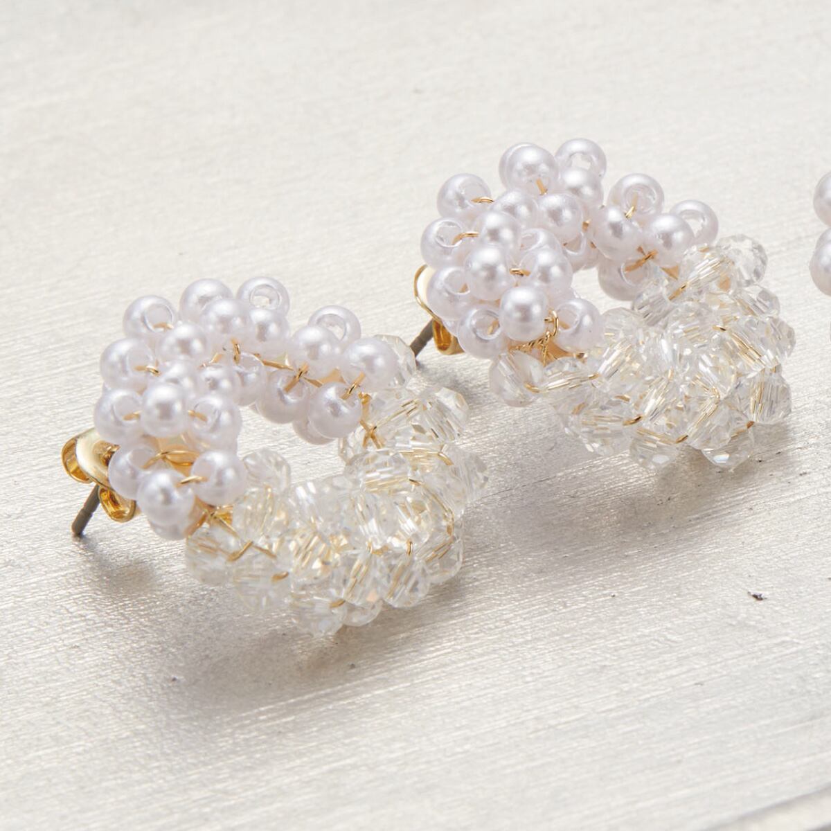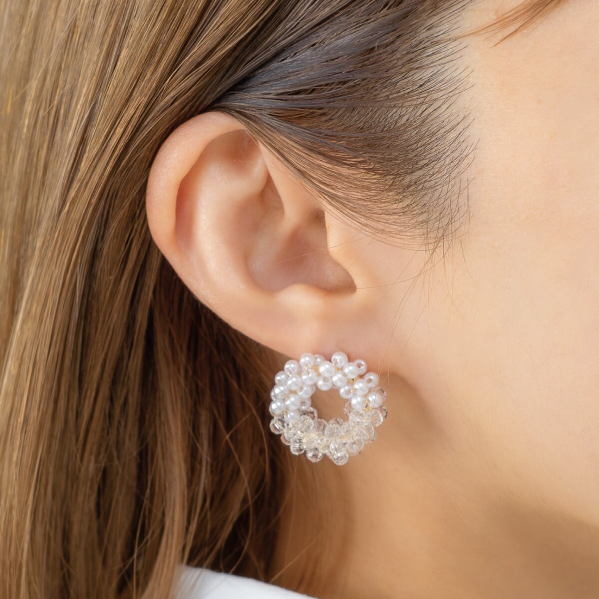 パールのやわらかな艶とクリアビーズの透明感が絶妙に調和し、