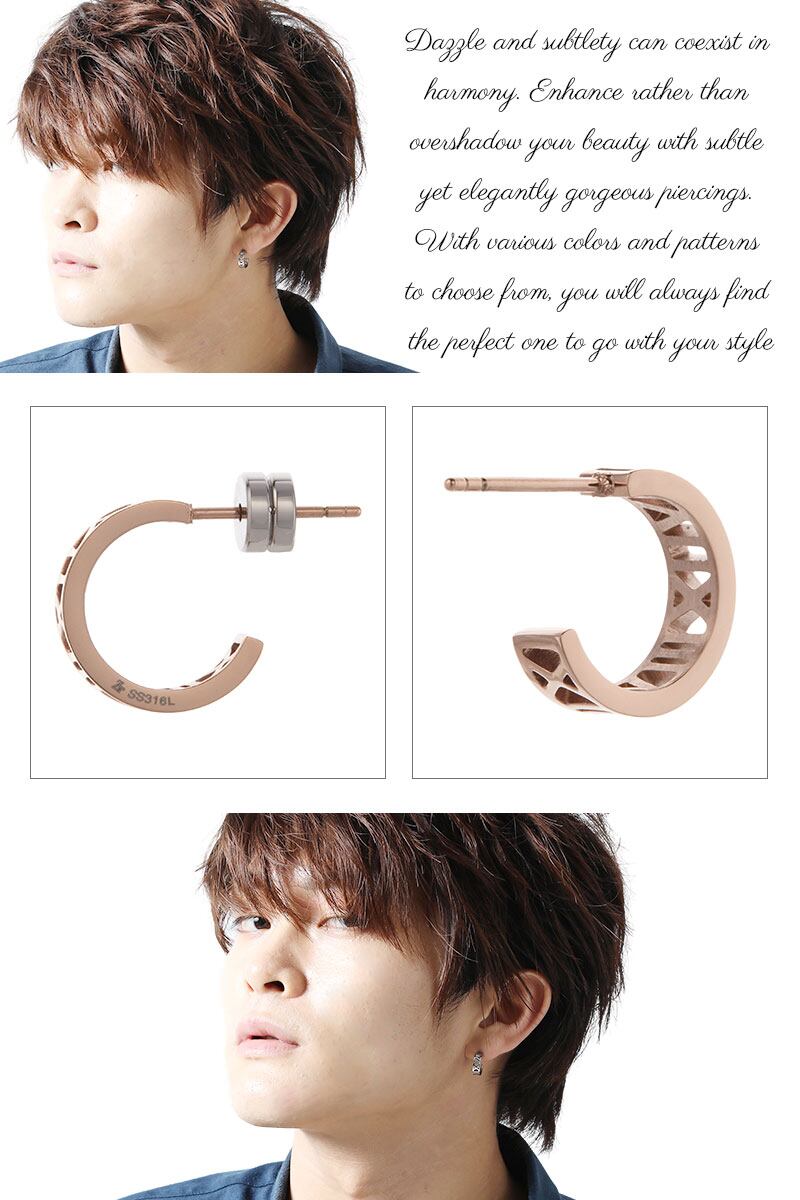 スタッドピアス メンズ レディース pm-zte3631 サージカルステンレス製 Zanipolo Terzini ザニポロタルツィーニ お肌に優しい 金属アレルギー対応 金アレ 巾着付 ローマ数字 英数字 ハーフフープ シンプル スタイリッシュ フォーマル 記念日 誕生日 プレゼント ギフト メール便送料無料
