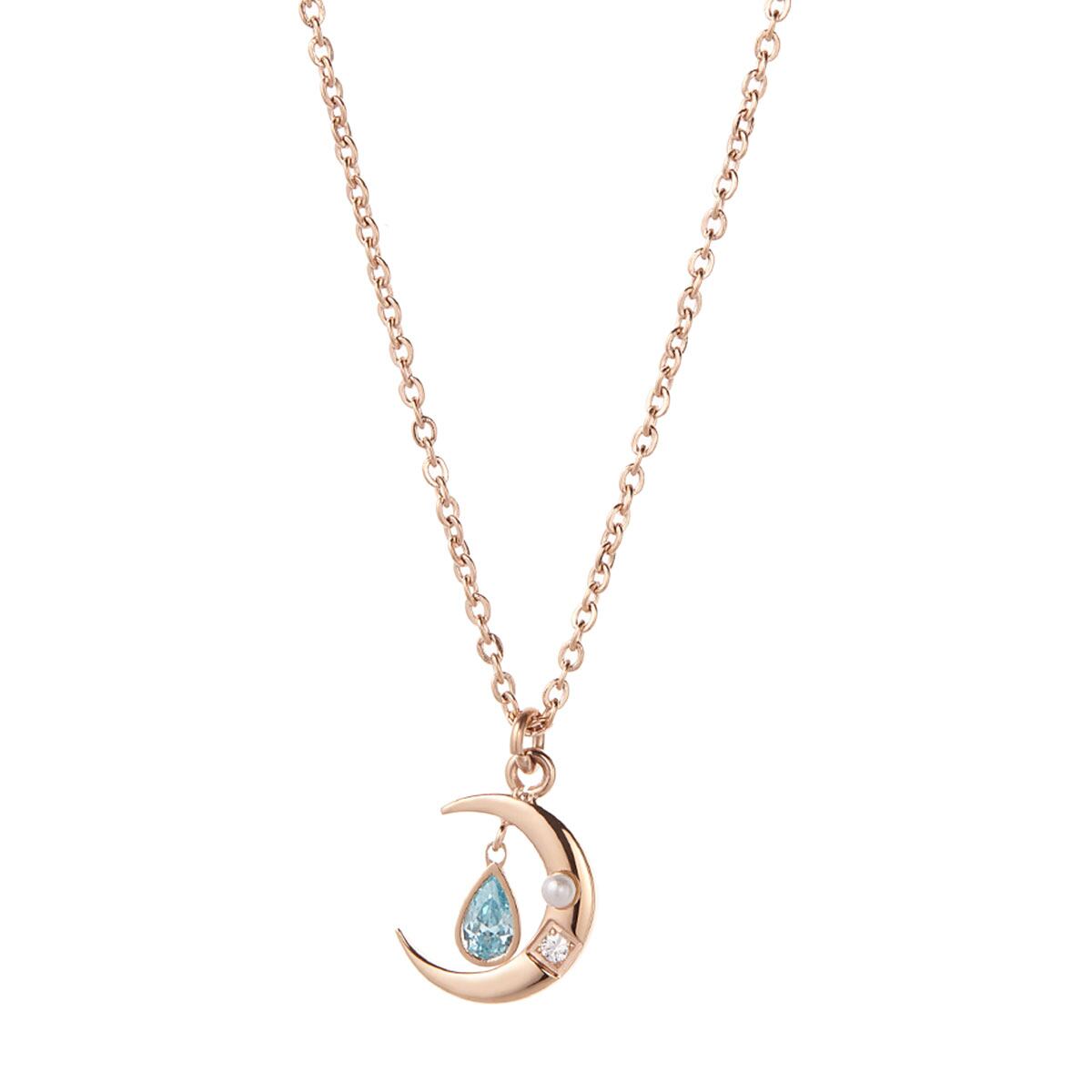 ムーンモチーフに淡いブルーのティアドロップチャームが揺れる