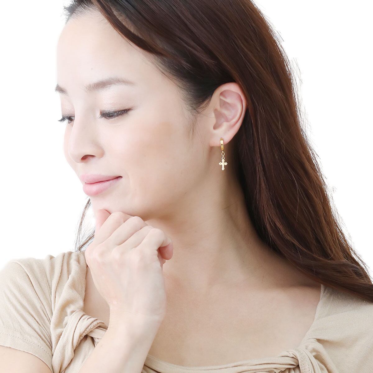 太めのフープからクロスモチーフがしゃらりと揺れる