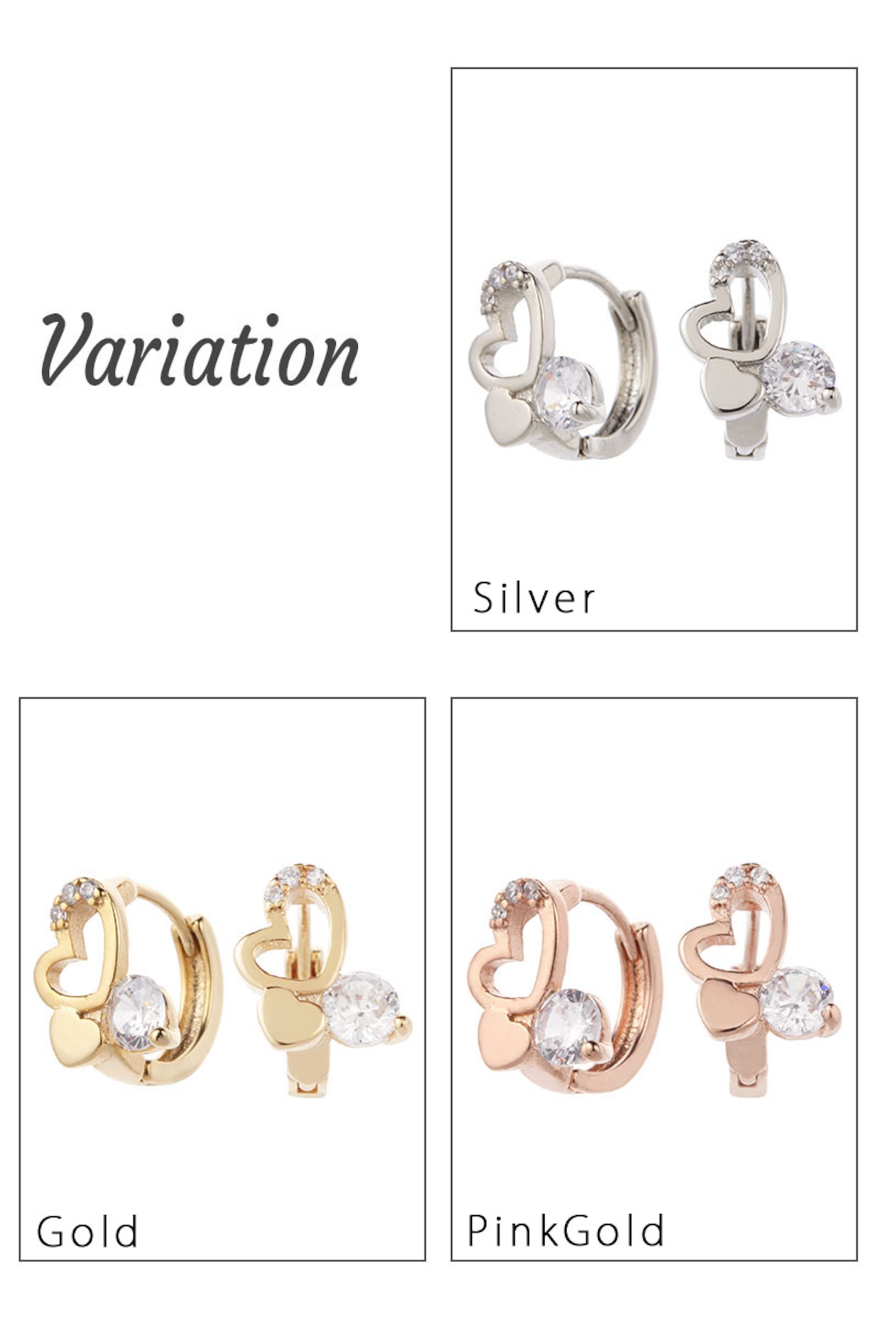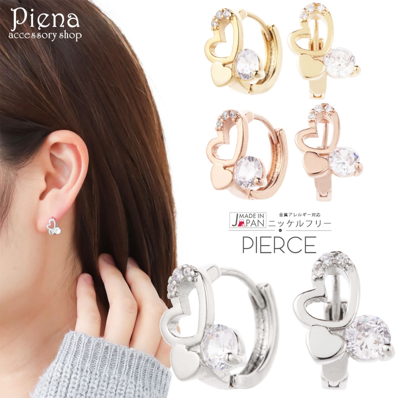フープピアス レディース ssz-sty-137 日本製 ニッケルフリー キュービックジルコニア ダブルハート お肌に優しい 金属アレルギー対応 安心 小さめ 小ぶり シンプル おしゃれ 綺麗 上品 可愛い カジュアル フォーマル 記念日 誕生日 プレゼント ギフト メール便送料無料