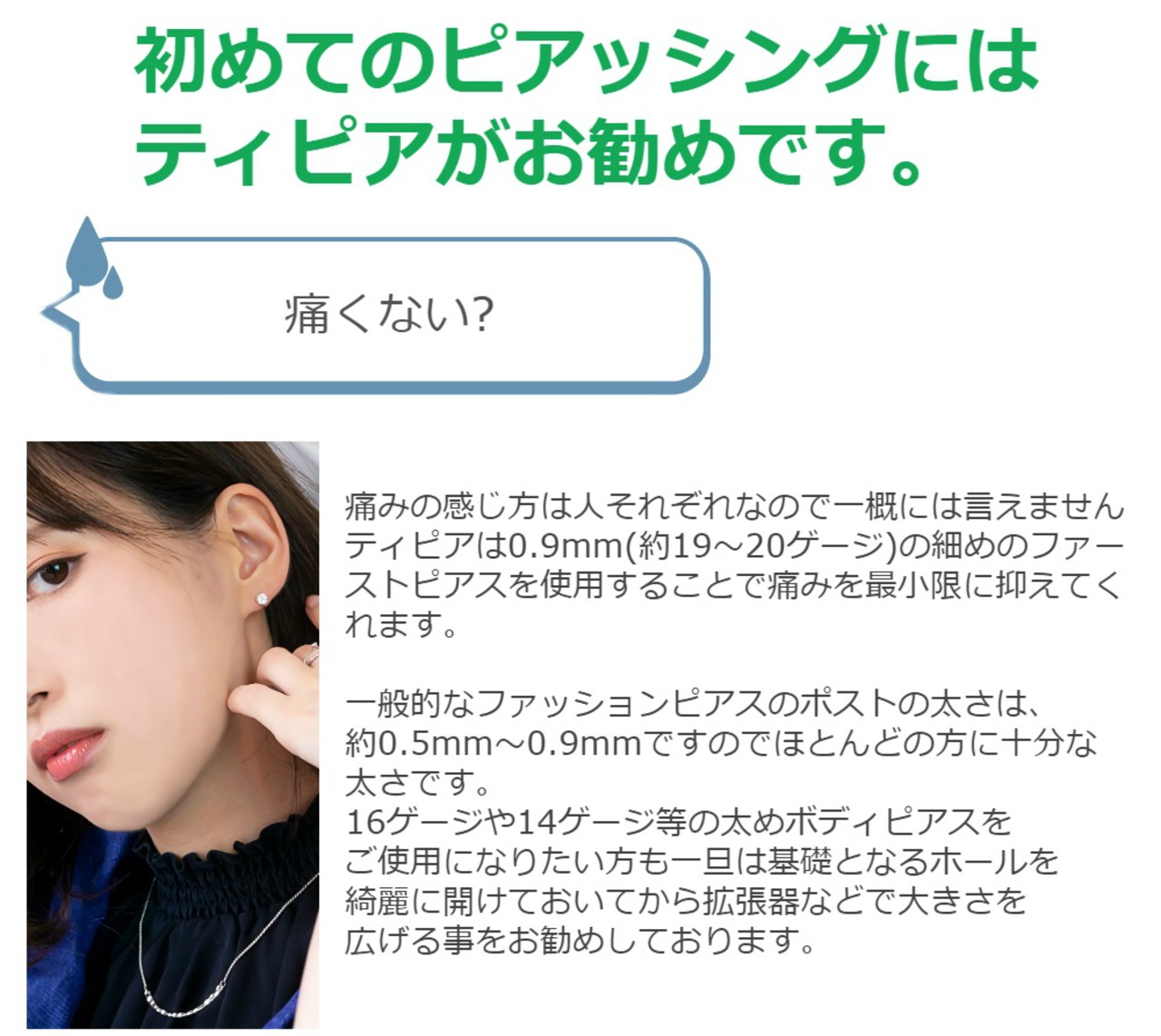 ピアスをあけるなら純チタン製のティピア。