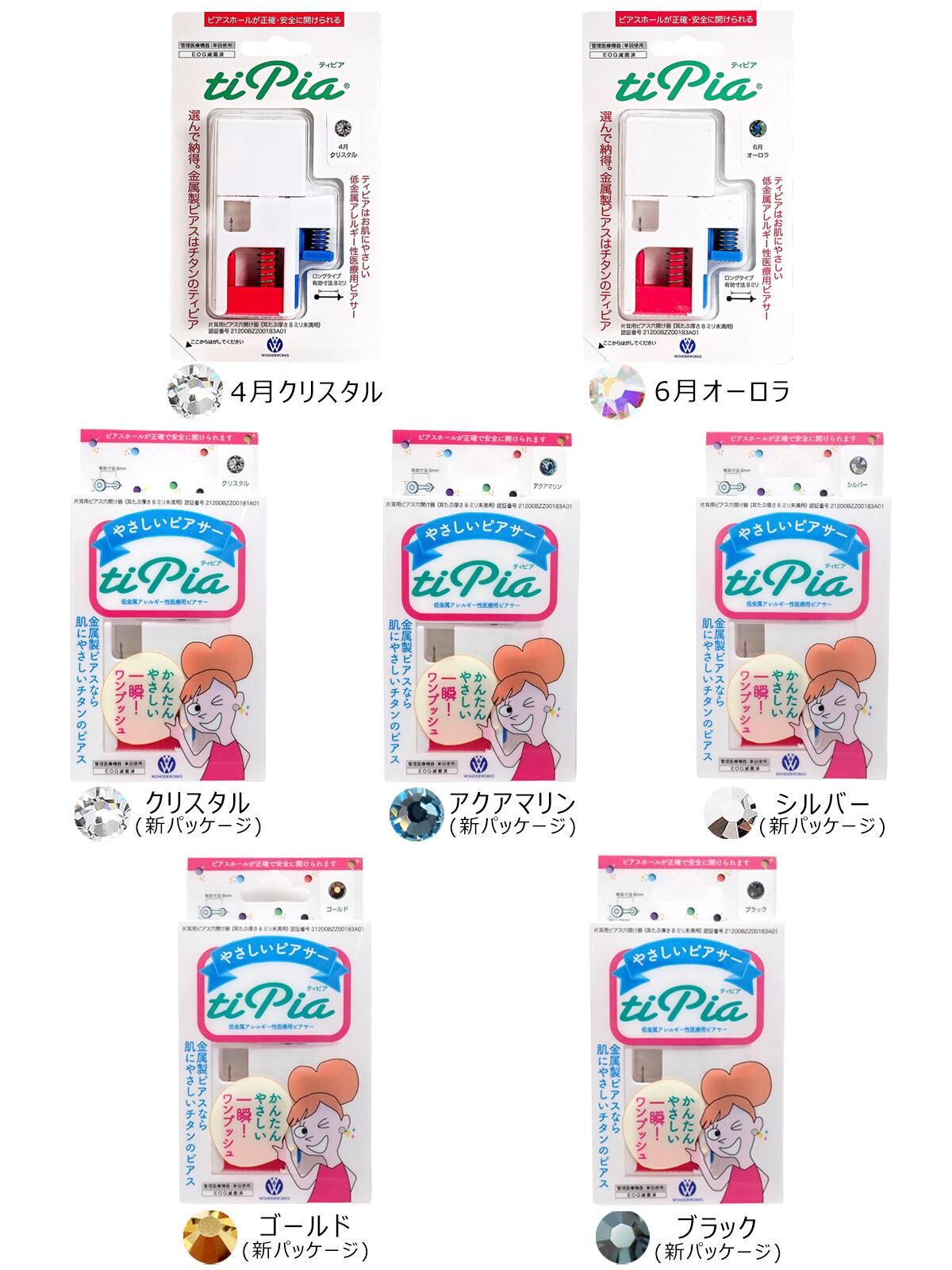 ピアッサー チタン製医療用 ファーストピアスは誕生石12種類 ピアッシング固定機能付き 片耳用 ピアサー ワンダーワークス ティピア 金属アレルギー対応 はじめて メール便送料無料 ピアス 開ける 福耳 秋冬 大人気 18g naz-care-001