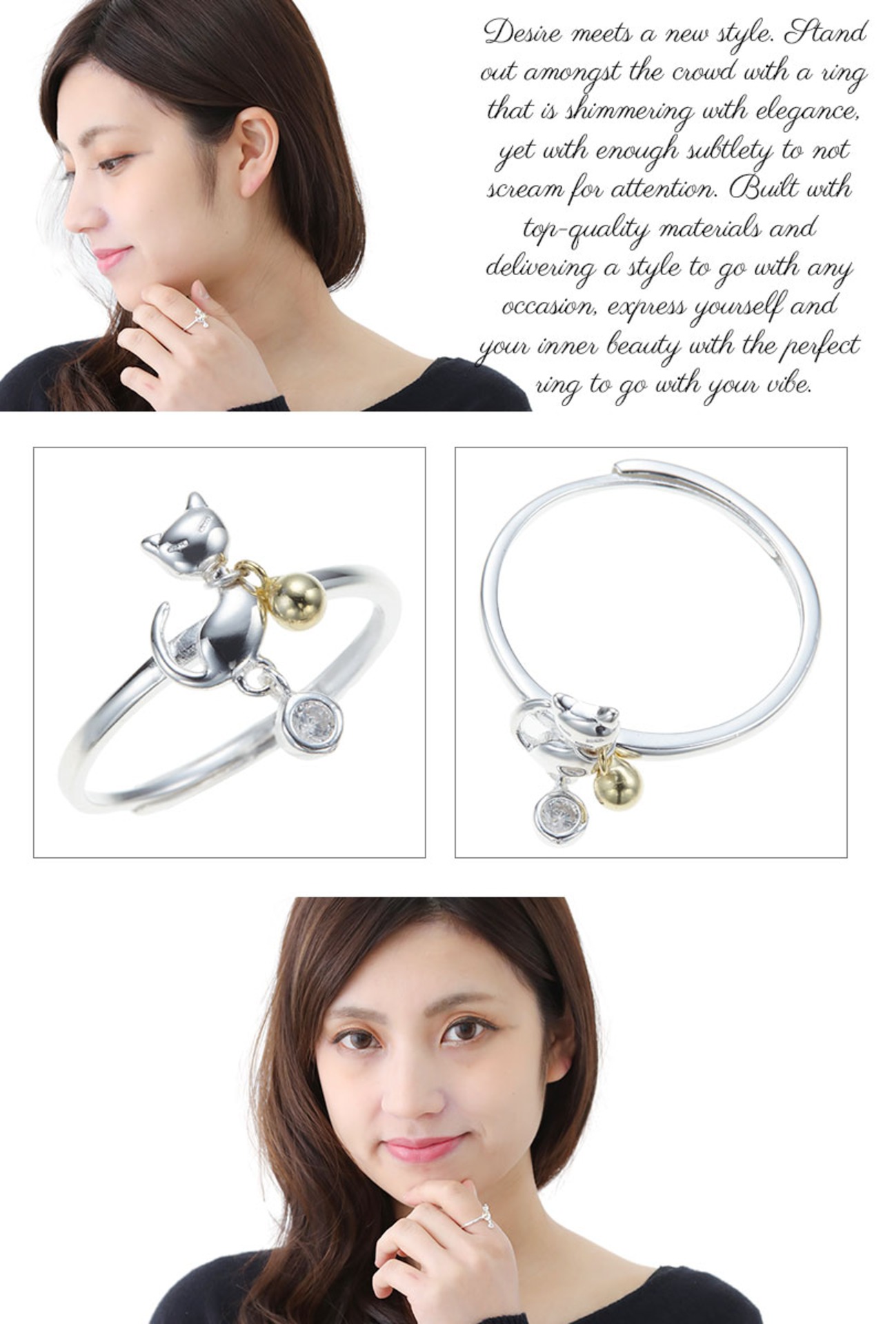 くるりんとしっぽを上げた姿が愛らしい猫モチーフのリング。