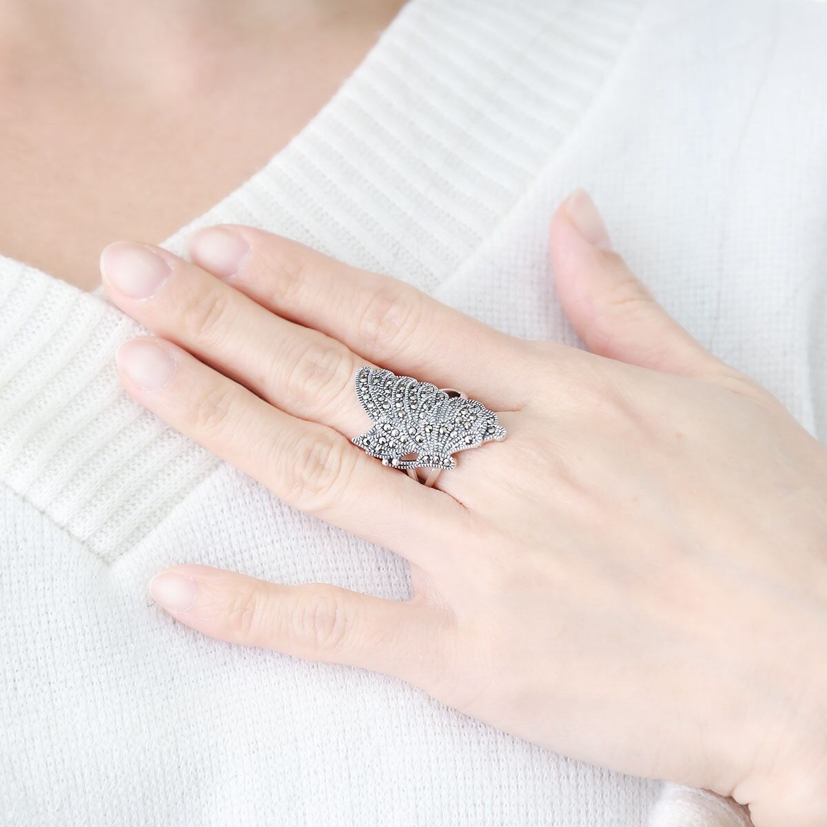 リング レディース ali-1870907 シルバー925 ヘマタイト 蝶 バタフライ フリーサイズ 豪華 大ぶり キラキラ オシャレ 綺麗 かわいい 指輪 記念日 誕生日 プレゼント ギフト メール便送料無料