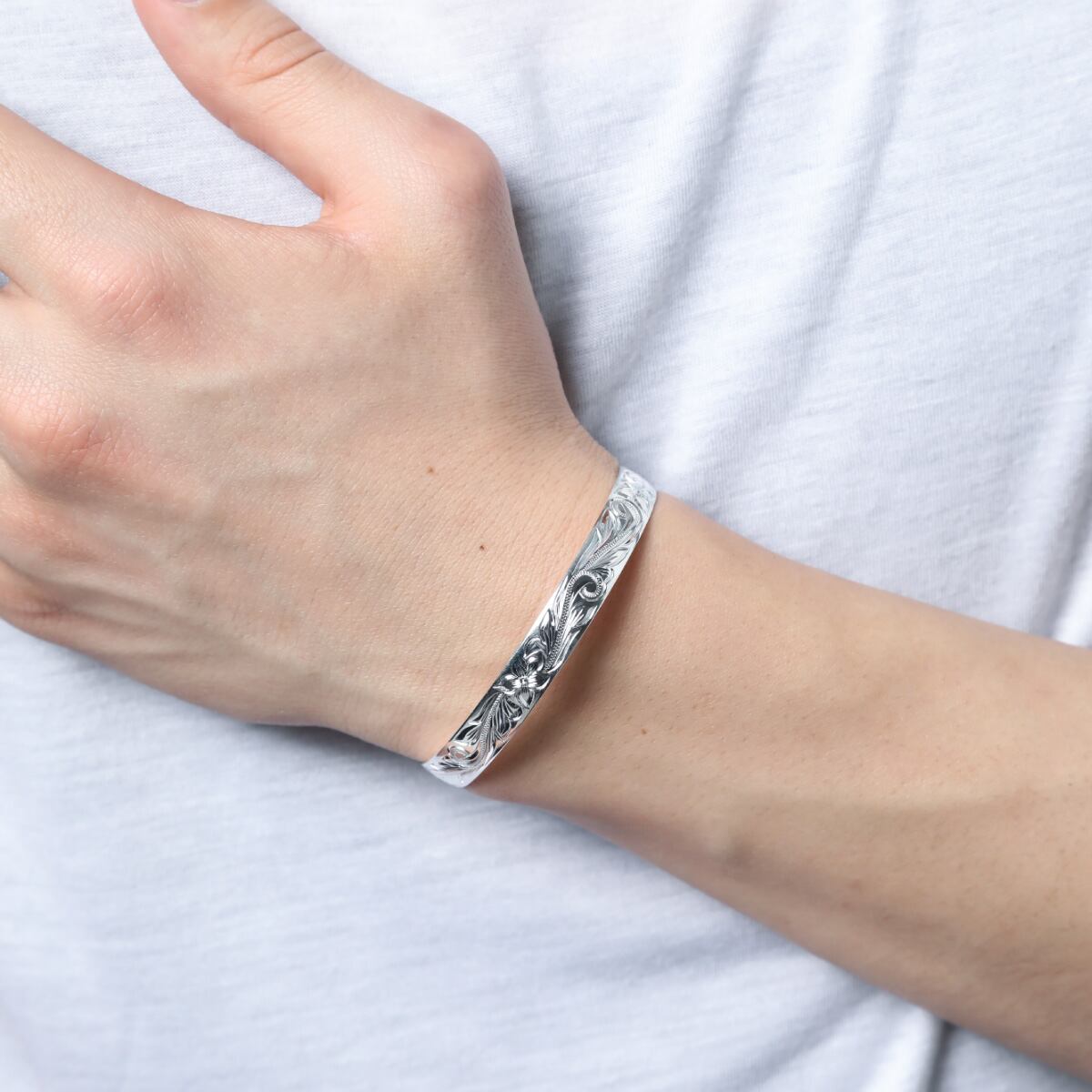 バングル メンズ レディース ali-pu-b240-8mm シルバー925 プルメリア スクロール 波 8mm ハワイアンジュエリー ユニセックス ハワジュ 大人 クール 海 カジュアル シンプル プレゼント ギフト 送料無料