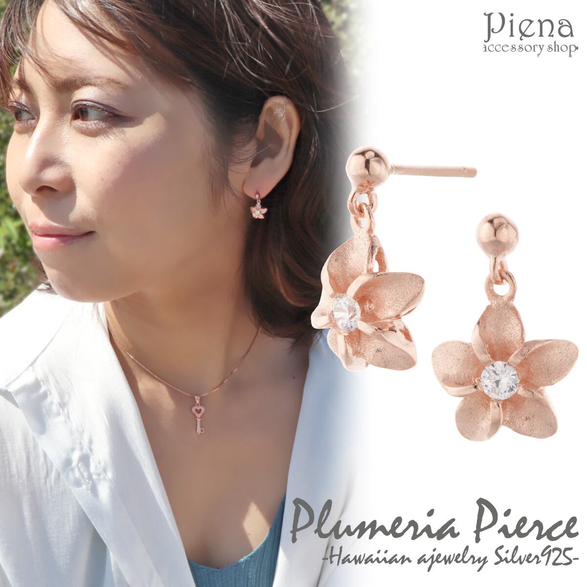 ピアス レディース ali-pu-e757 キュービックジルコニア シルバー925 プルメリア ピンクゴールド 揺れる フリンジ ハワイアンジュエリー フラワー 花 海 ハワジュ 大人 かわいい 上品 カジュアル シンプル プレゼント ギフト メール便送料無料