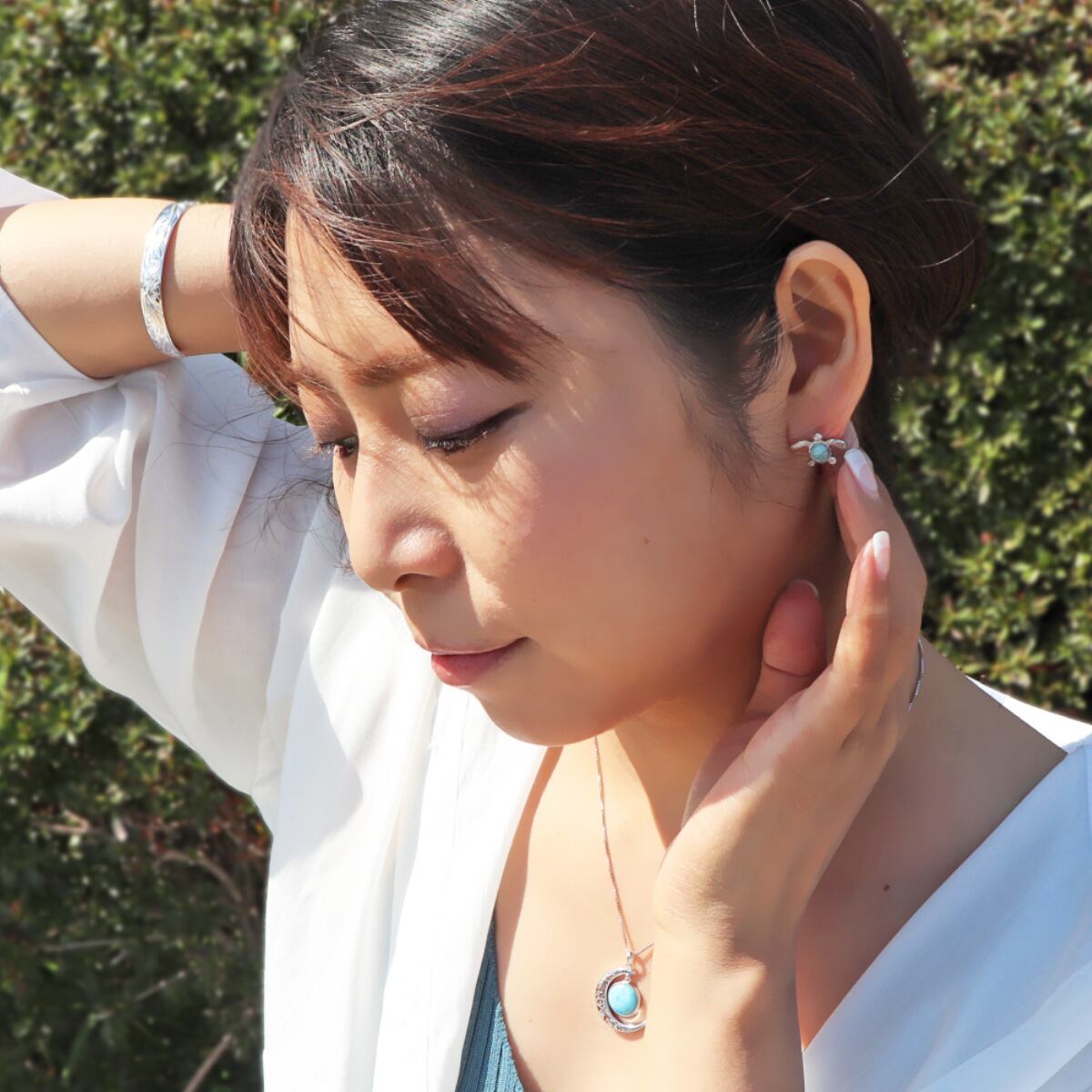 ピアス レディース ali-pu-e838 シルバー925 ラリマー ホヌ 亀 カメ ウミガメ 天然石 パワーストーン ハワイアンジュエリー 大人 可愛い 海 カジュアル 水色 ブルー ペクトライト プレゼント ギフト 送料無料