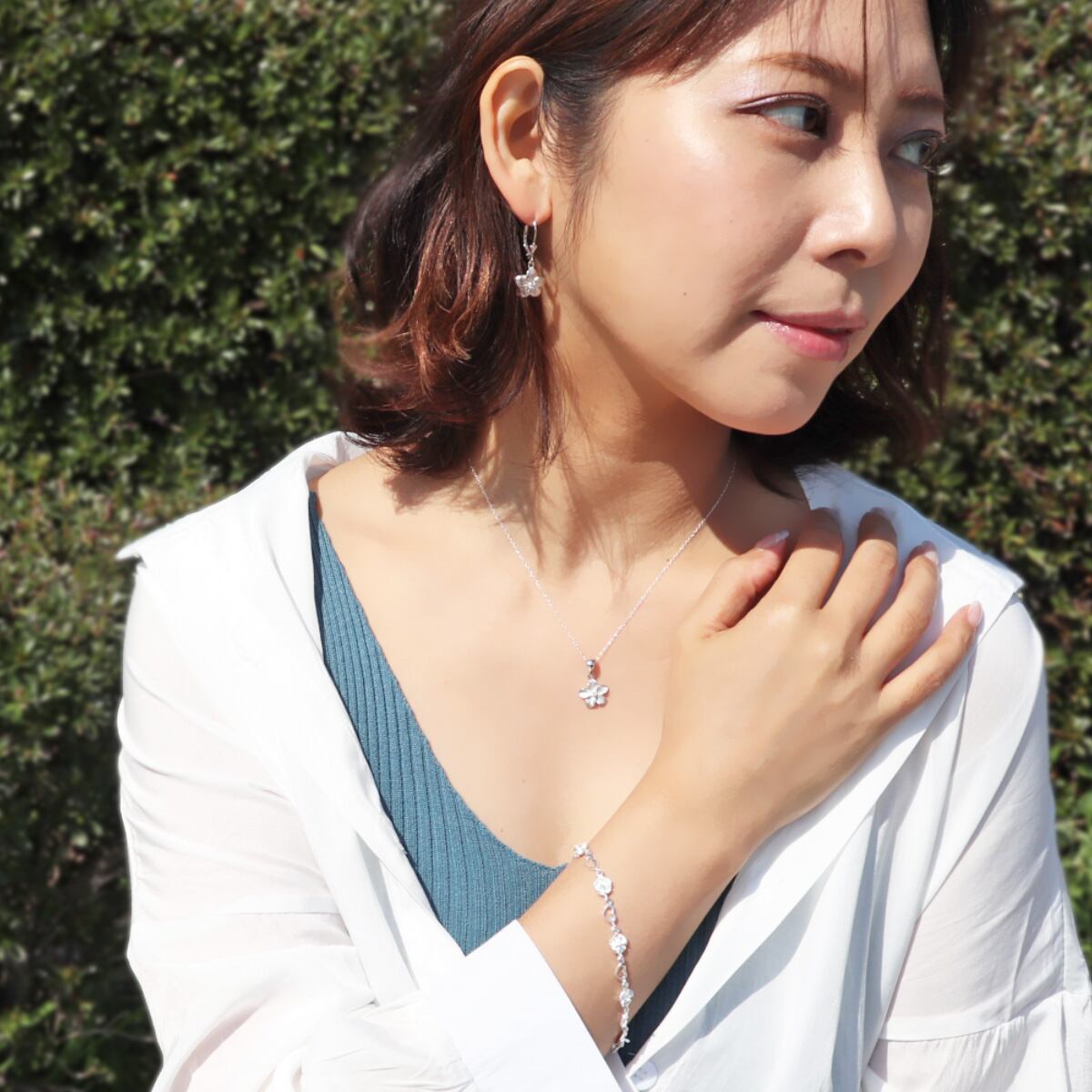 ネックレス レディース ali-pu-p359 キュービックジルコニア シルバー925 プルメリア ハワイアンジュエリー 40cmあずきチェーン フラワー 花 大人 上品 かわいい カジュアル シンプル ハワジュ 海 夏 プレゼント ギフト メール便送料無料