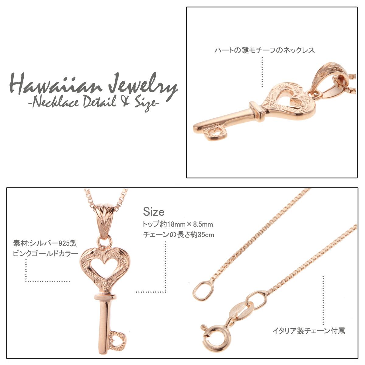 ネックレス レディース ali-pu-p1121 シルバー925 キーモチーフ ハート ハワイアンジュエリー ピンクゴールド 小さめ スクロール ナル 波 彫刻 大人 可愛い 海 ハワジュ シンプル プレゼント ギフト メール便送料無料