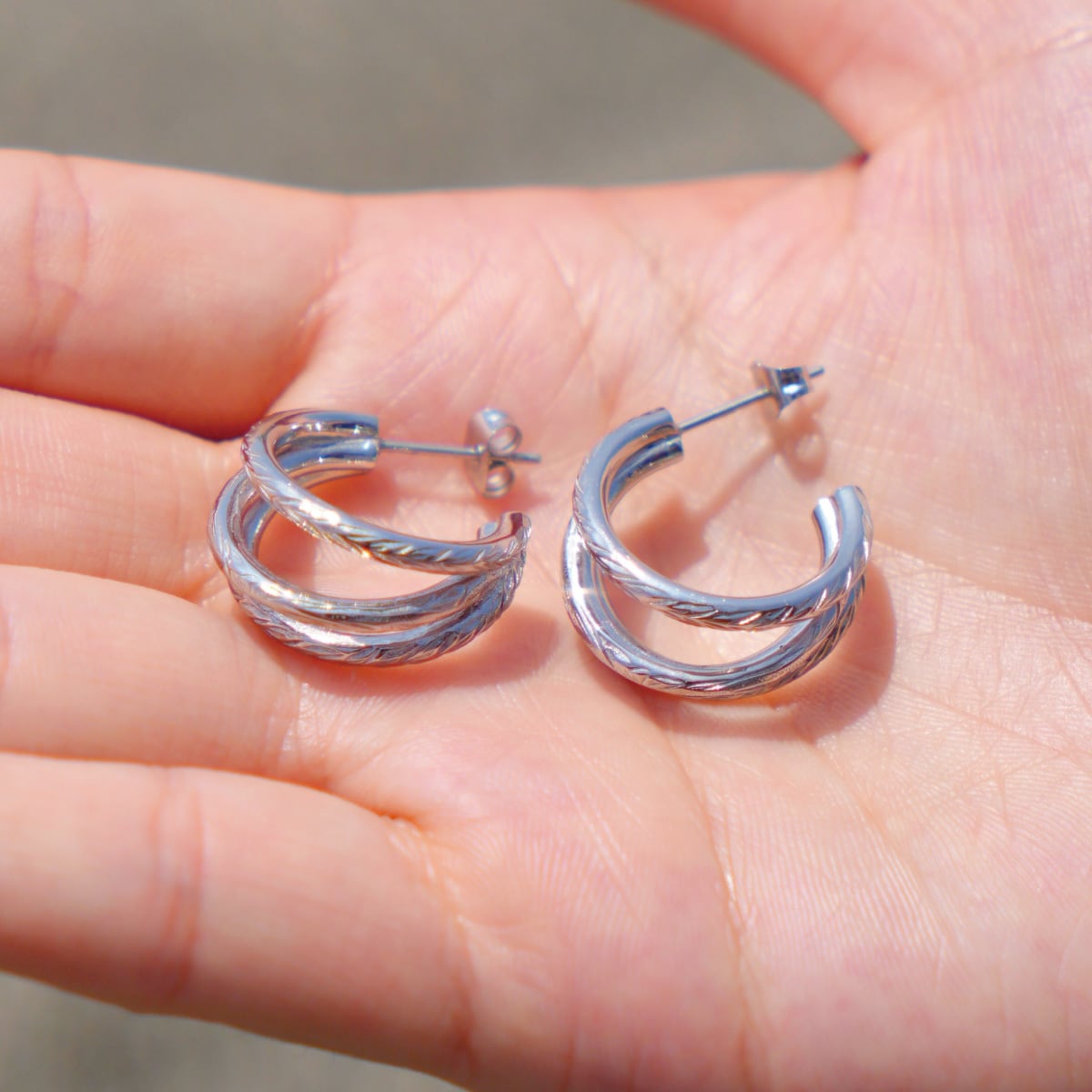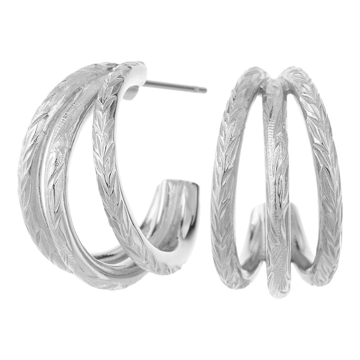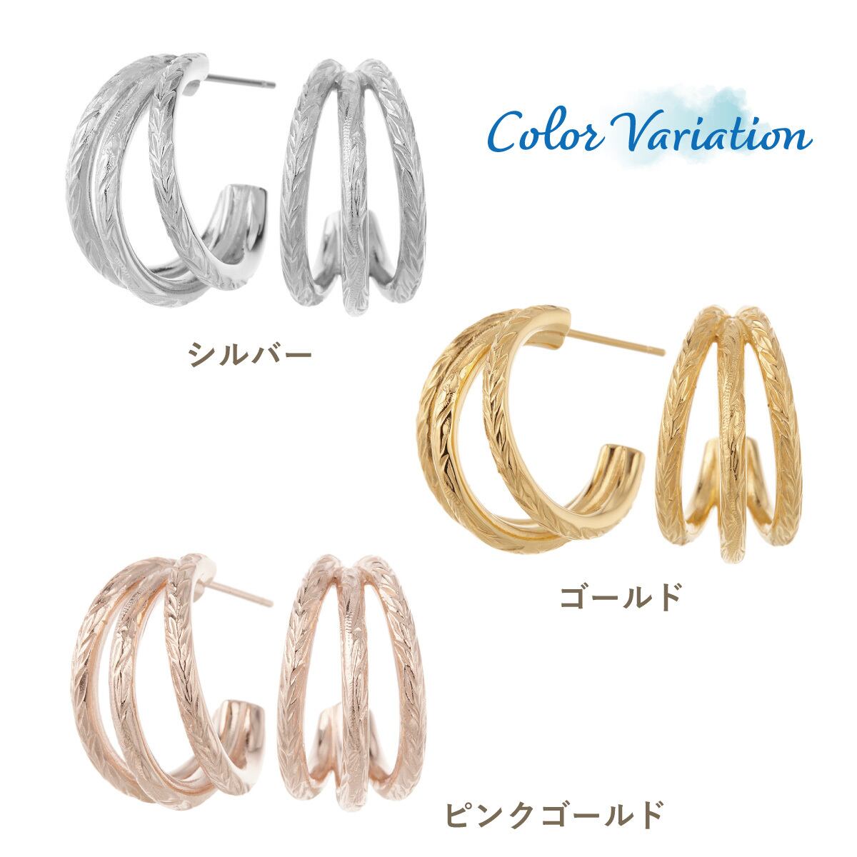 ピアス レディース aab-gess270 サージカルステンレス製 ハワイアンジュエリー ハワジュ 3連 リング ボリューム 波 スクロール 葉 マイレ お肌に優しい 金属アレルギー対応 アクセサリー お揃い 誕生日 記念日 プレゼント ギフト 送料無料
