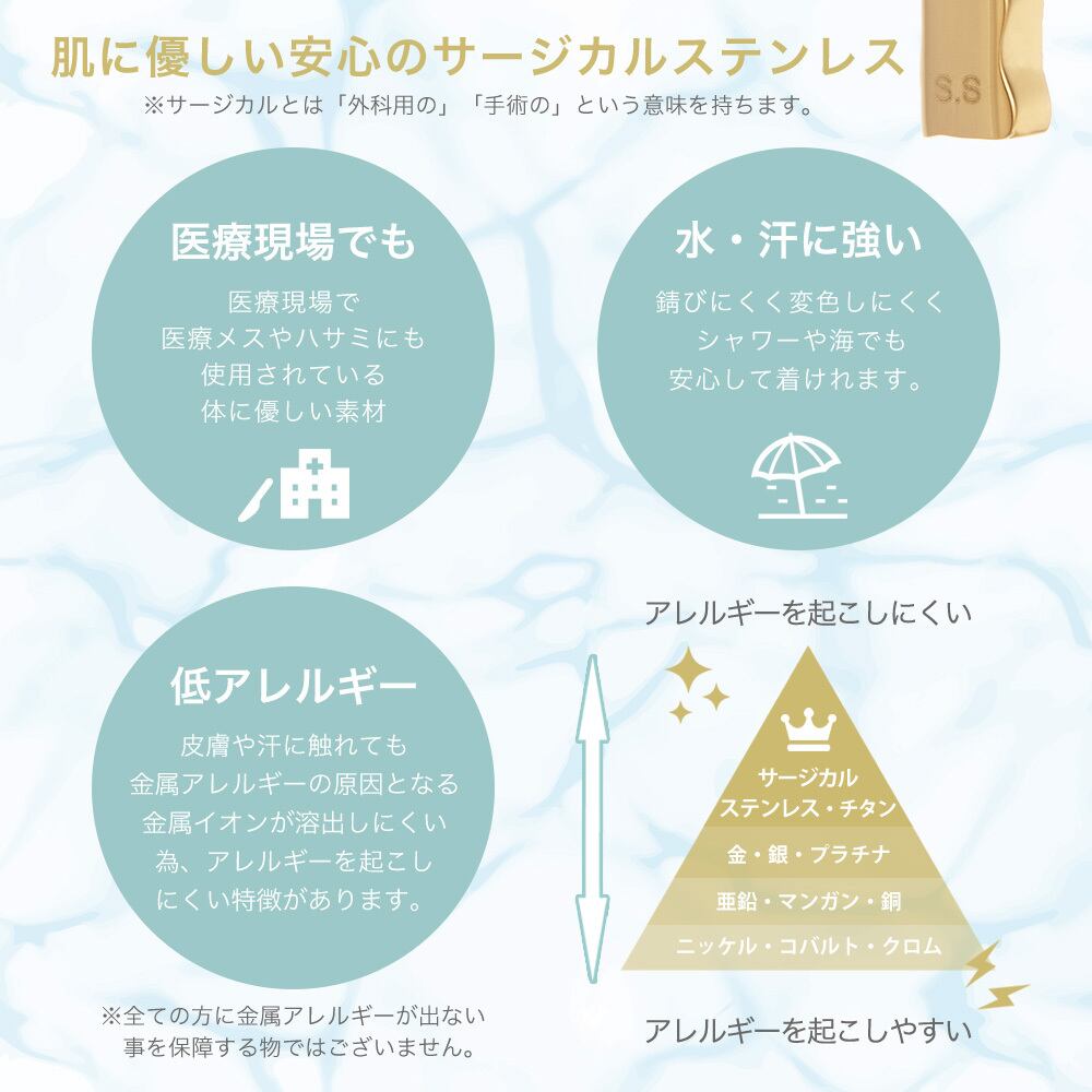 (全ての方に金属アレルギーが出ない事を保障する物ではございません)