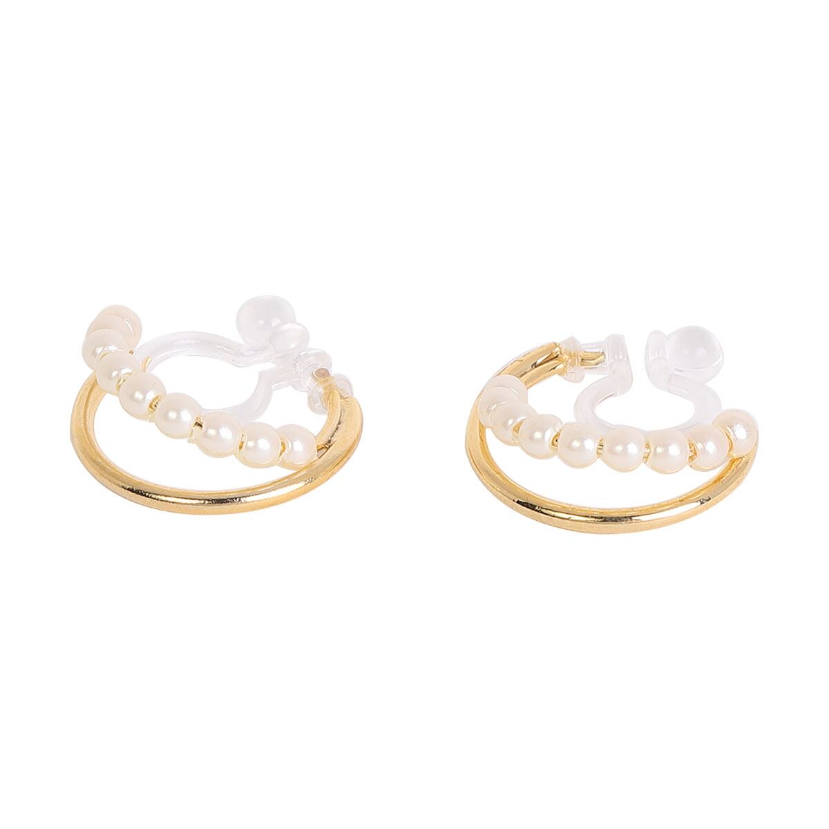 イヤリング ノンホールピアス レディース ss-m-no-027 日本製 真鍮 樹脂 ニッケルフリー お肌に優しい 低金属アレルギー フェイクパール フープ 二連 シンプル 上品 かわいい 大人可愛い オシャレ 誕生日 記念日 プレゼント ギフト メール便送料無料