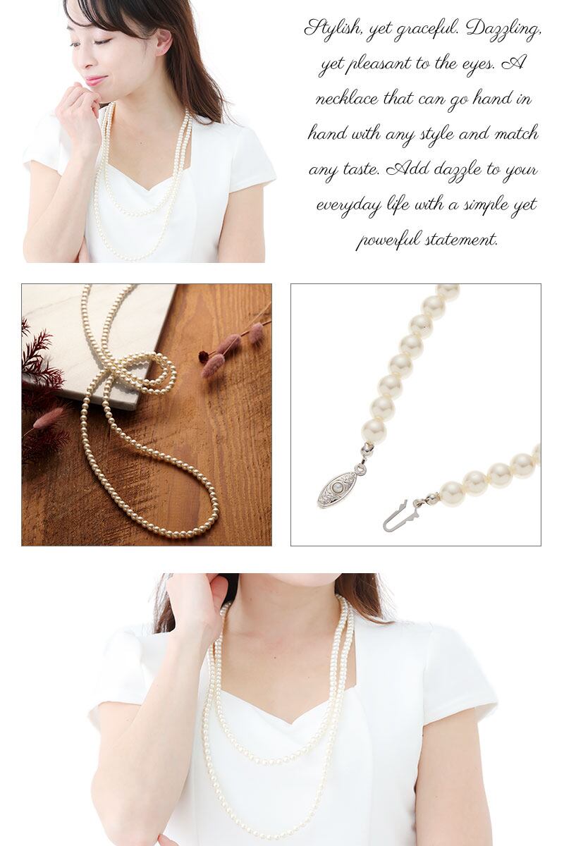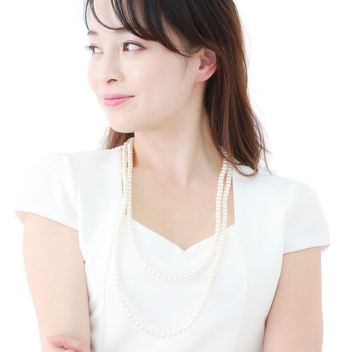 ネックレス レディース ss-p-nk-026 パール 真珠 2連 ロングネックレス 首回り約148cm 直径7mm 長い 長め ドレスに合う 大人 上品 気品 繊細 エレガント ゴージャス 美しい シンプル パーティー 誕生日 バースデー 結婚式 二次会 卒業式 入学式 フォーマル プレゼント メール便送料無料