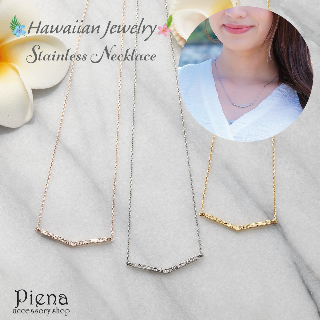 ネックレス レディース aab-gnss201 サージカルステンレス製 ハワイアンジュエリー V字 ハワジュ お肌に優しい 低金属アレルギー 上品 華奢 かわいい プレゼント ギフト 送料無料