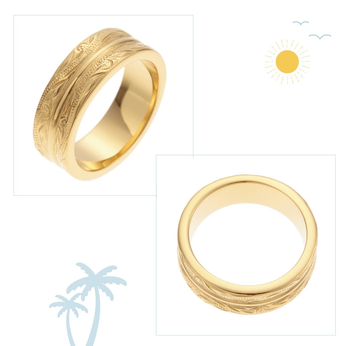 リング レディース メンズ aab-grss745 サージカルステンレス製 ハワイアンジュエリー ミル打ち 幅広 2連リング お肌に優しい 低金属アレルギー プルメリア 花 スクロール ナル 波 マイレ 植物 かわいい 大人可愛い 上品 ペア お揃い 誕生日 記念日 プレゼント 送料無料