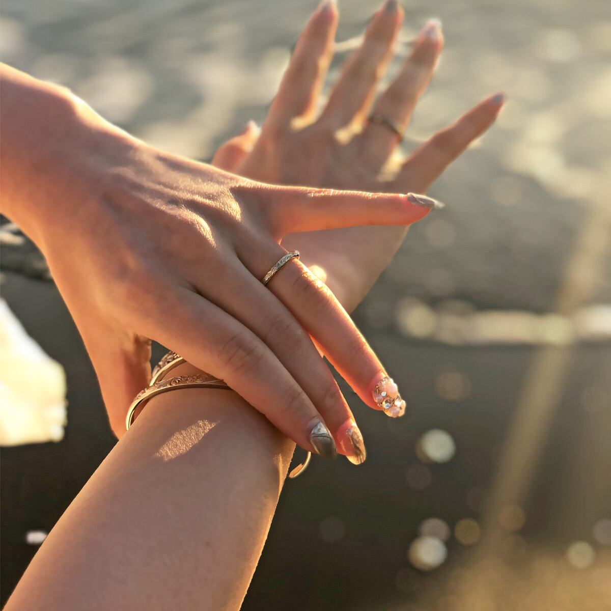 細身のカーブリングで華やかにグロッシーメタルが煌きます。