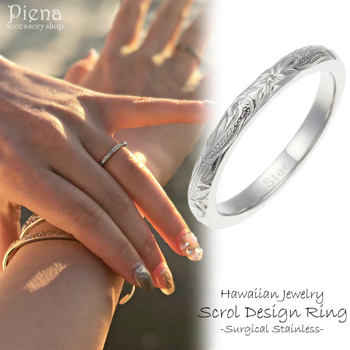美しい彫柄を施したステンレス製のハワイアンジュエリーのリングです。