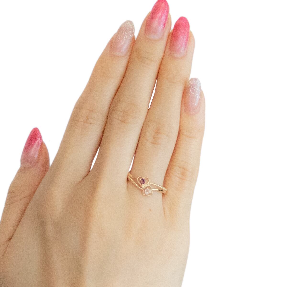リング レディース wi-k10-81379 me on... みぃおん K10 10金 ロードライトガーネット ローズクオーツ 天然石 オープンハート ねじり加工 可愛い 華奢 上品 繊細 高品質 誕生日 プレゼント ギフト 送料無料