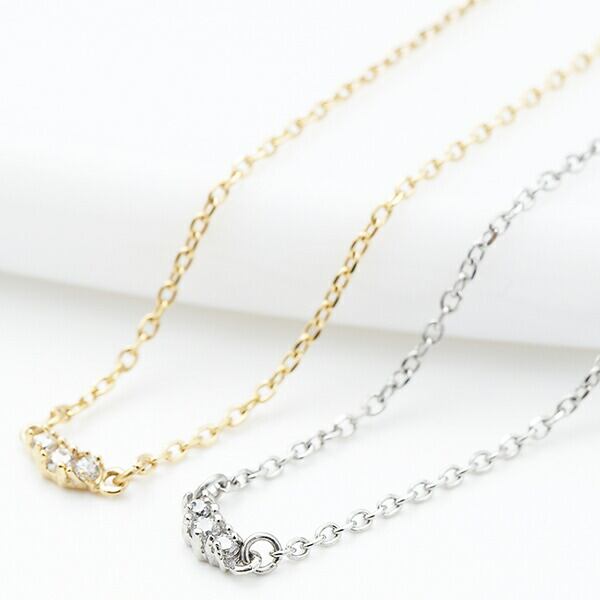 繊細なキュービックジルコニアを流線型に並べた、緩やかなU字ラインがエレガントなネックレスです。