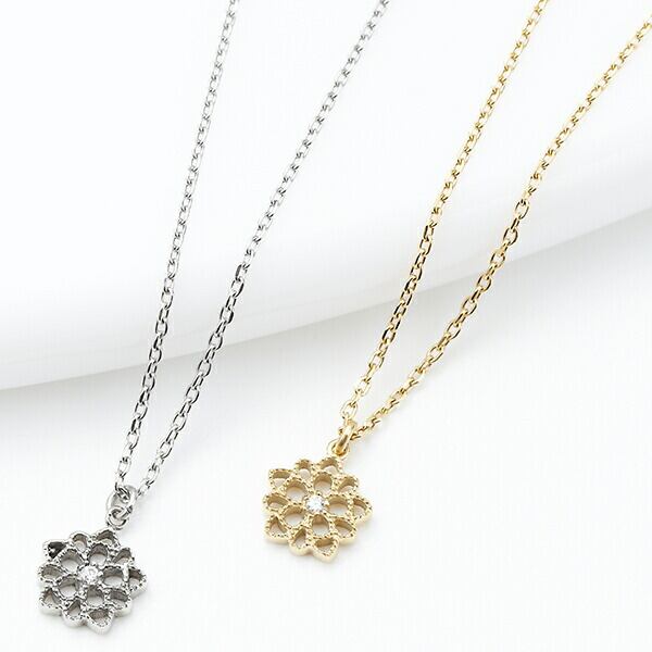 一粒のジルコニアが輝く透かしフラワーのCUTEなペンダントネックレスです。