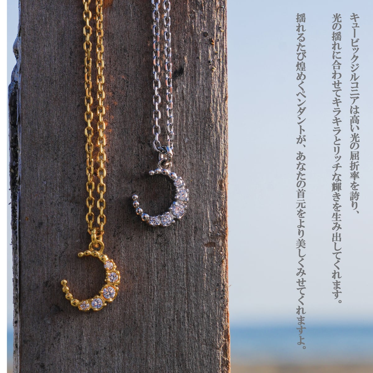 細部まで丁寧に作られた繊細な三日月モチーフの中に、5粒のキュービックジルコニアをセッティングしました。