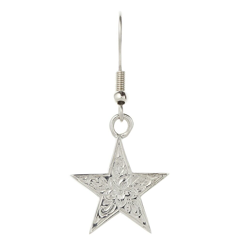 星型モチーフの中心にハワイのお花、プルメリアが繊細に彫られたフックピアスです。