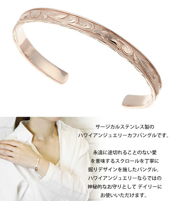 バングル レディース aab-gbsg68-pg ハワイアンジュエリー スクロール サージカルステンレス製 金属アレルギー対応 ピンクゴールド Hawaii 波 メタル 大人かわいい 送料無料 ブレスレット プレゼント 秋冬 大人気