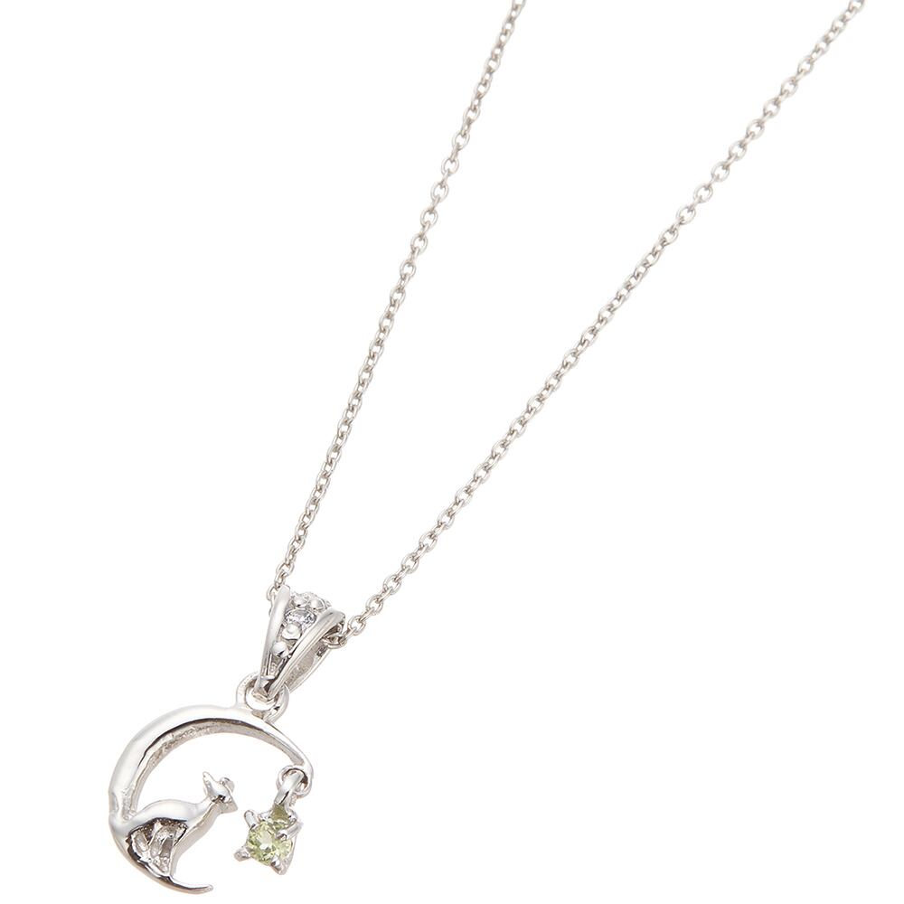 ネックレス レディース tr-4-1926 三日月と猫の誕生石 シルバー925製 キュービックジルコニア 天然石 ネコ ムーン バースデーストーン