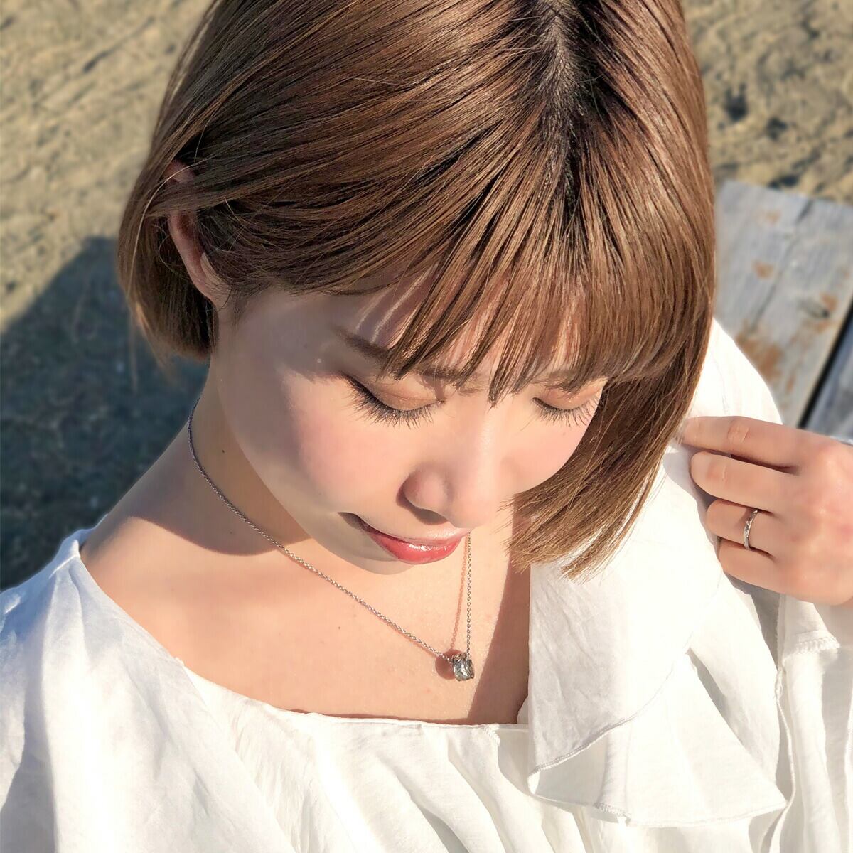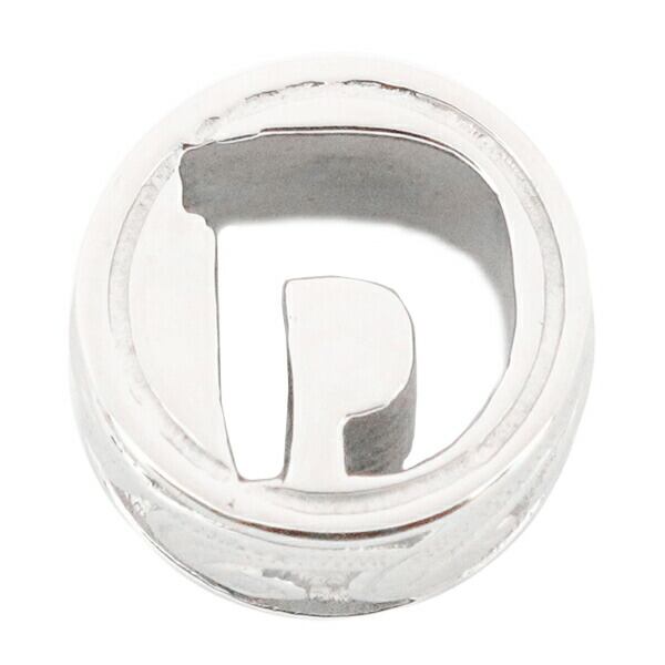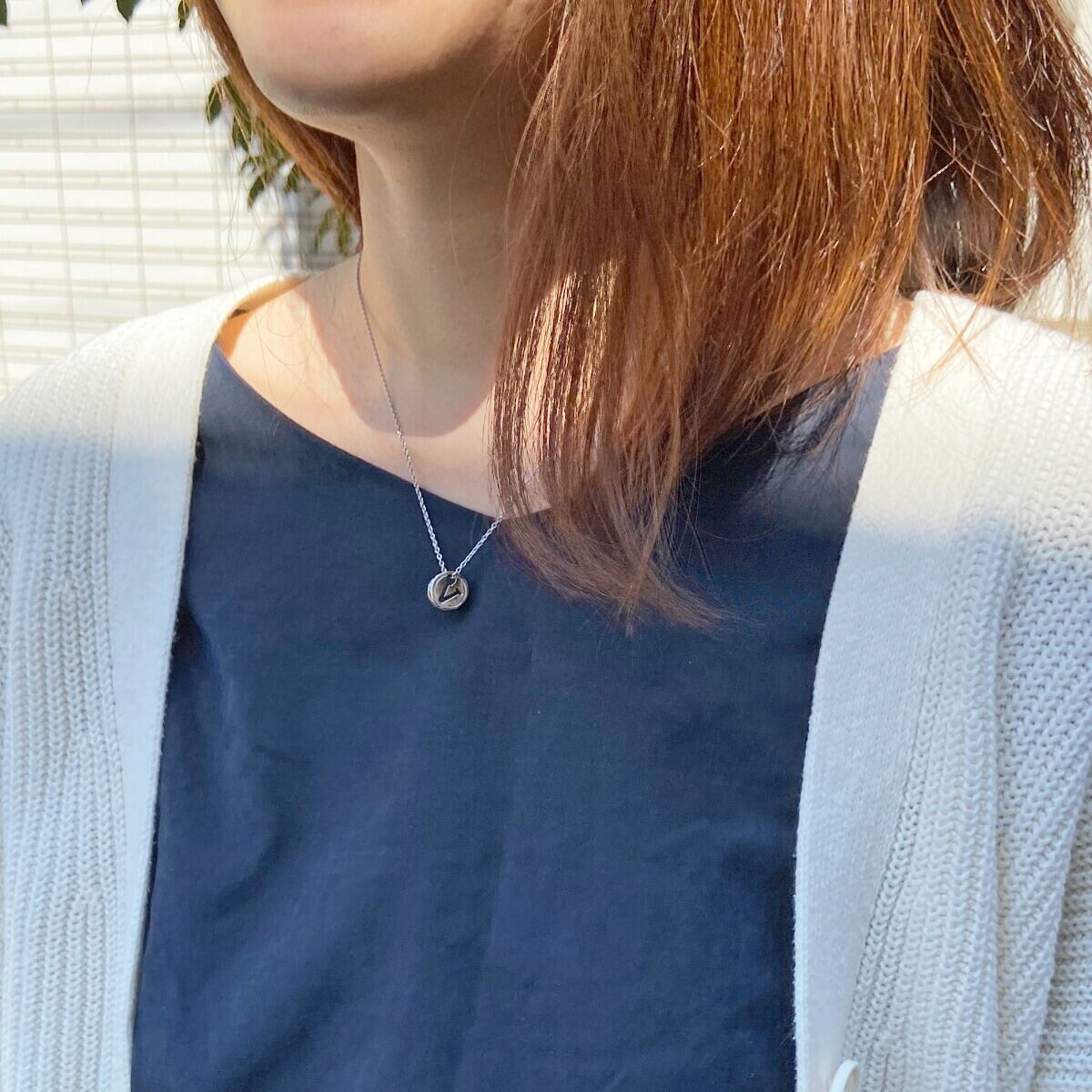 小さな丸いチャームにサイドにアルファベットがくり抜かれたネックレスです。