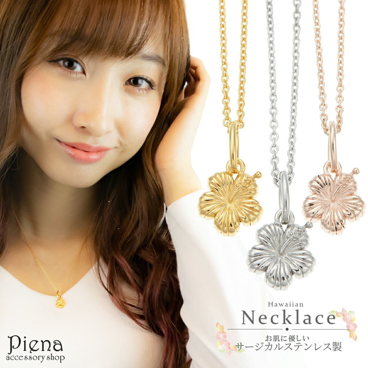 ネックレス レディース サージカルステンレス お肌に優しい 低金属アレルギー 安心 ハワイアンジュエリー ハイビスカス 沖縄 南国 お花 夏 海 トロピカル シンプル おしゃれ 可愛い 上品 立体的 小ぶり カジュアル 普段使い 記念日 誕生日 クリスマス プレゼント ギフト