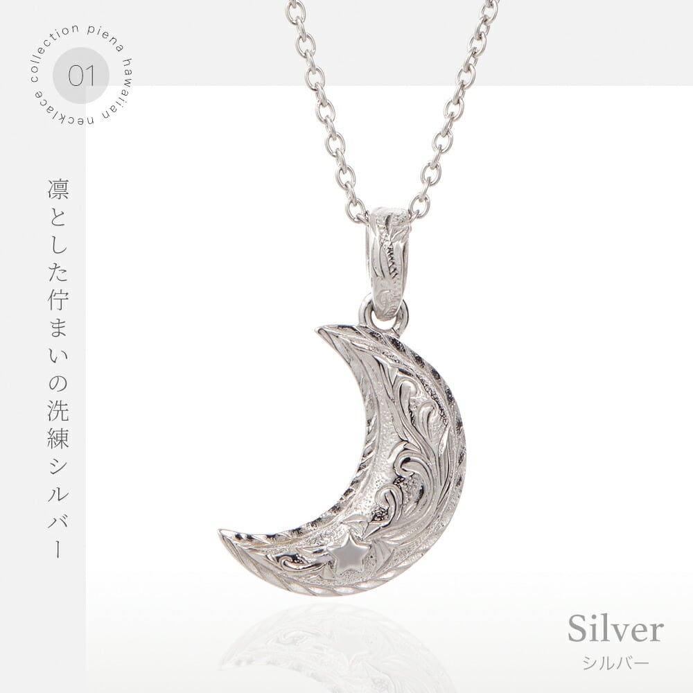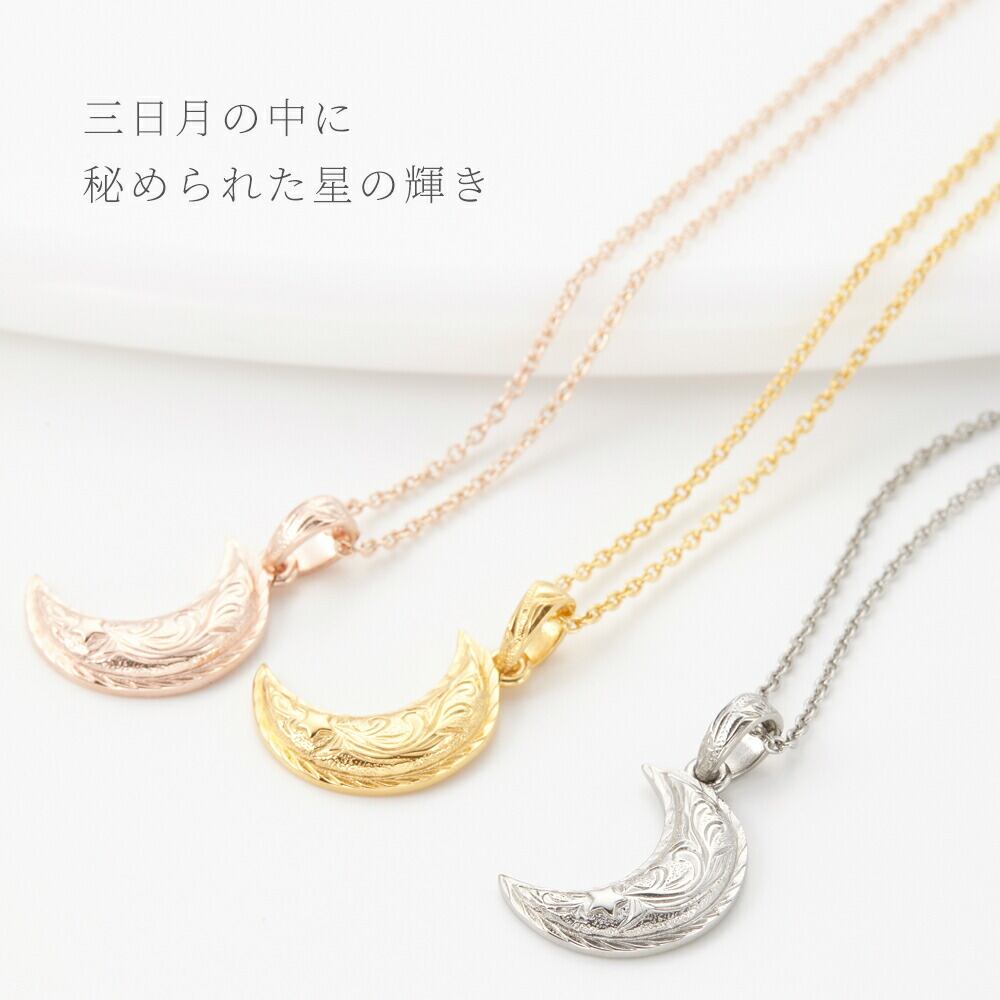 ハワイアンジュエリー ムーンネックレス ペンダント レディース メンズ ユニセックス ペア サージカルステンレス 金属アレルギー対応 低アレルギー シルバー ゴールド ピンクゴールド 三日月 星 波 スター スクロール 彫刻 誕生日 プレゼント
