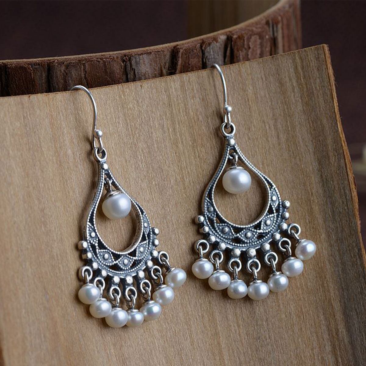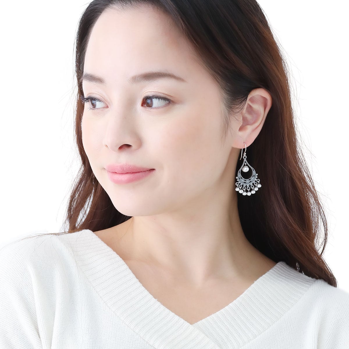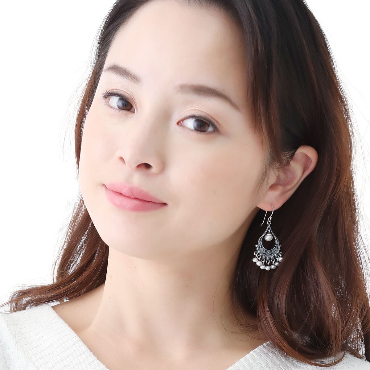 ピアス レディース シルバー925製 淡水パール アンティーク風 エスニック 揺れる フックピアス ロングピアス リゾート 旅行 海外 パーティー おしゃれ かわいい 大人かわいい アクセサリー ジュエリー 誕生日 記念日 プレゼント ギフト メール便送料無料