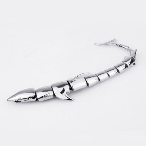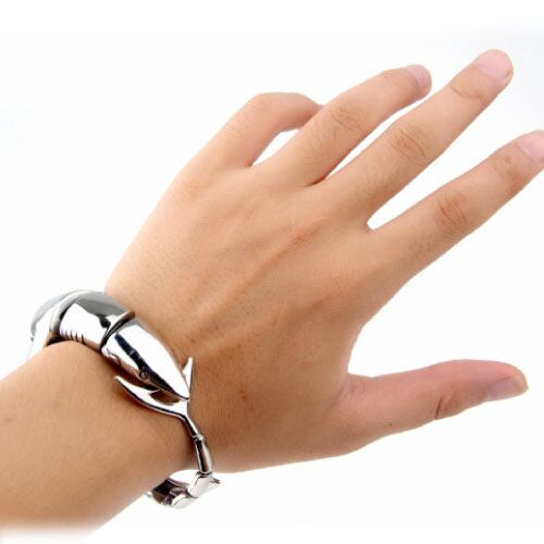 バングル ブレスレット メンズ サージカルステンレス製 サメ 鮫 海 動物 魚 アニマルモチーフ お肌に優しい 金属アレルギー対応 かっこいい ワイルド 個性的 おしゃれ ハード ロック 力強い 男らしい おもしろ 恋人 友達 記念日 誕生日 プレゼント ギフト 送料無料