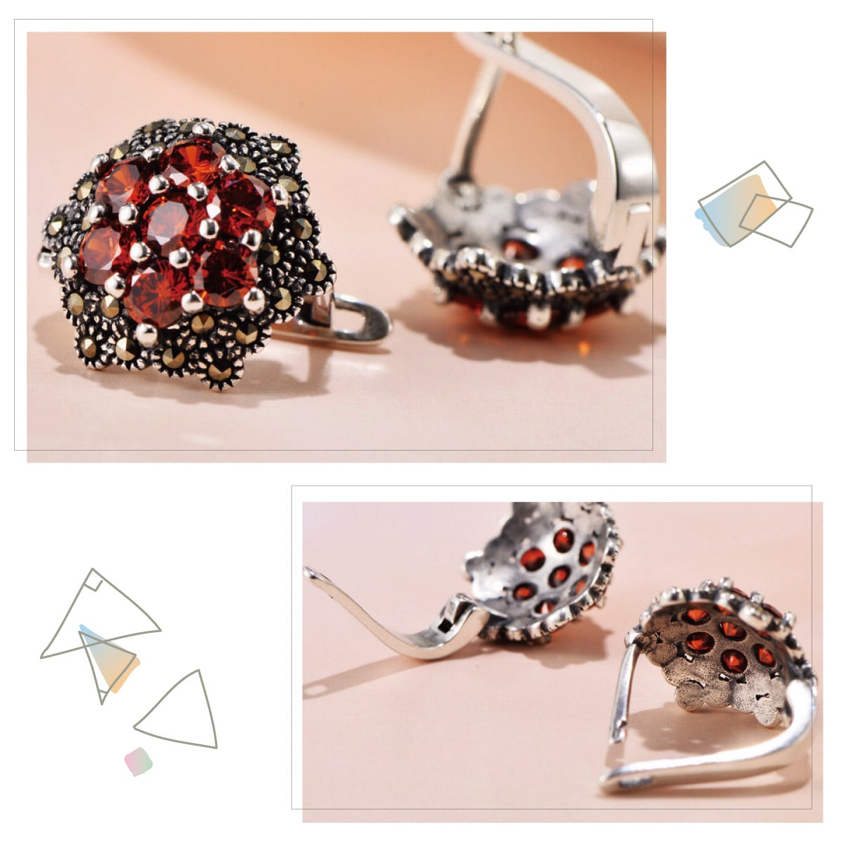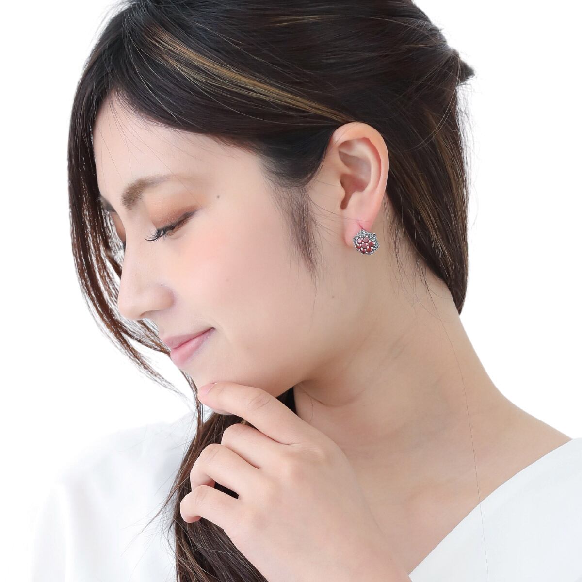 ピアス レディース シルバー925 ガーネット ヘマタイト フラワー 花 アンティーク風 パヴェ キラキラ かわいい 大人可愛い 個性的 ゴージャス パーティー 結婚式 二次会 誕生日 記念日 プレゼント ギフト 送料無料