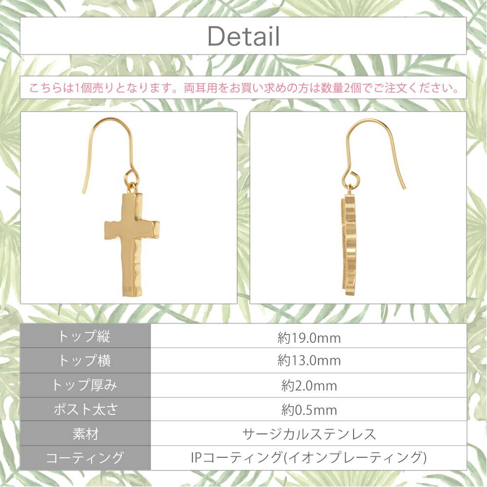 ダブルクロスフックピアス ハワイアンジュエリー レディース 片耳用 サージカルステンレス IPコーティング イオンプレーティング 金属アレルギー対応 シルバー ゴールド ピンクゴールド 十字架 二重 立体 プルメリア 波 スクロール 彫刻 プレゼント ギフト あす楽
