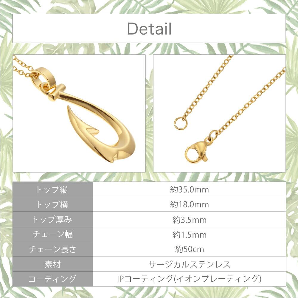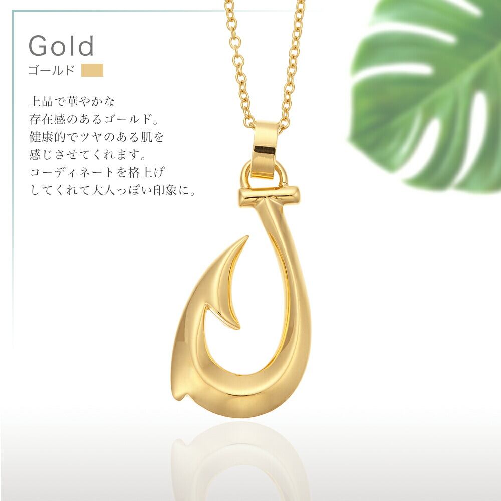 フィッシュフックネックレス ハワイアンジュエリー レディース サージカルステンレス IPコーティング イオンプレーティング 金属アレルギー対応 シルバー ゴールド ピンクゴールド 釣り針 プレゼント ギフト あす楽