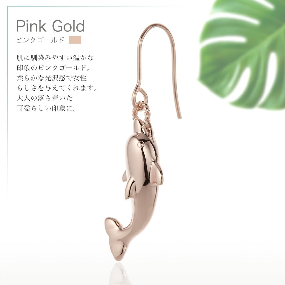 ドルフィンフックピアス ハワイアンジュエリー レディース 片耳用 サージカルステンレス IPコーティング イオンプレーティング 金属アレルギー対応 シルバー ゴールド ピンクゴールド イルカ 海 プレゼント ギフト あす楽