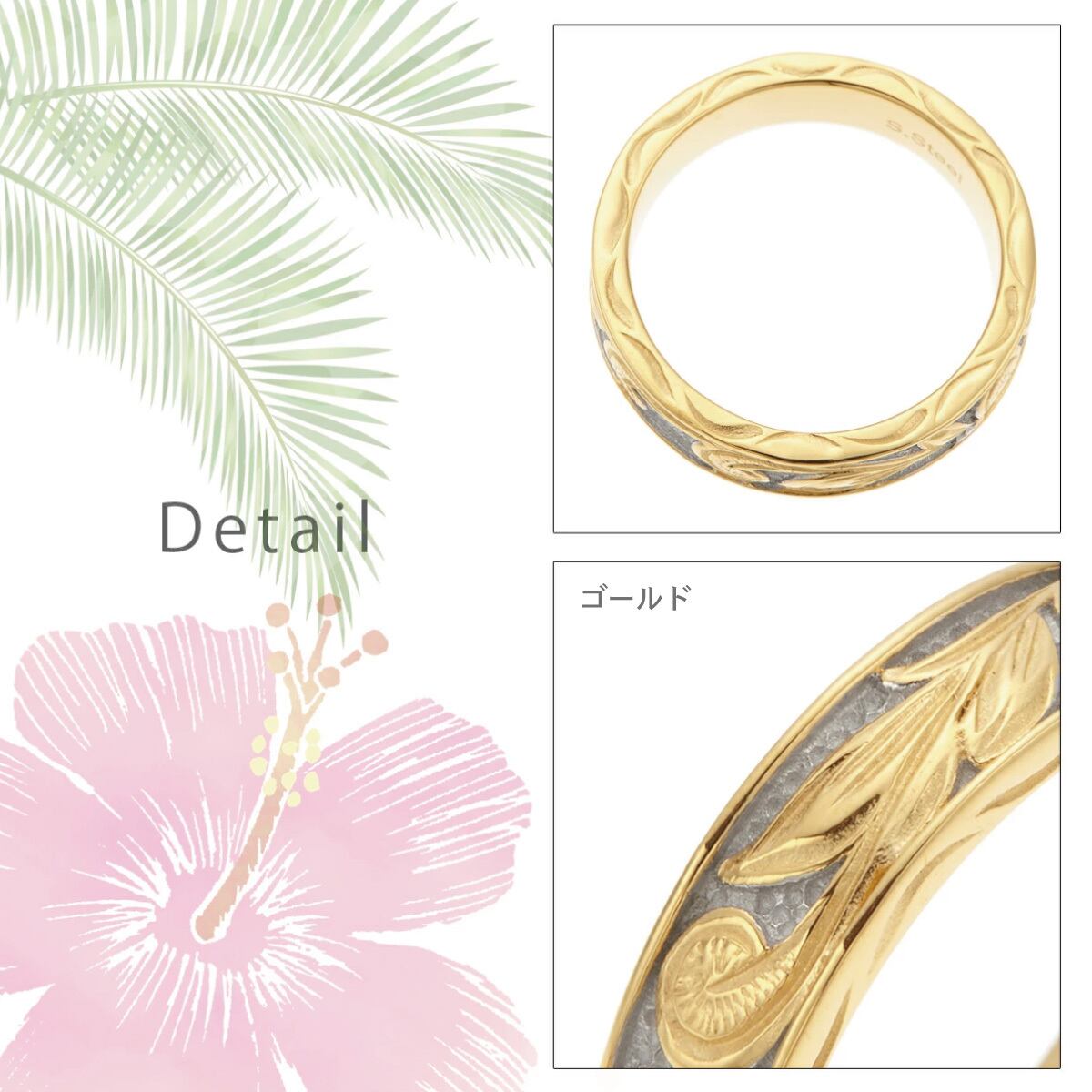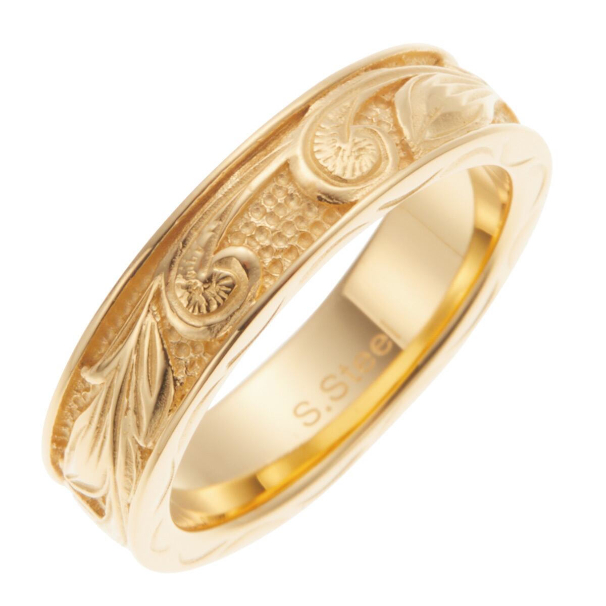 リング レディース メンズ aab-grss550-24k サージカルステンレス製 ハワイアンジュエリー お肌に優しい 低金属アレルギー対応 安心 マイレ スクロール ハワジュ リング幅太め 綺麗 おしゃれ 上品 高級感 繊細な彫刻 ピンクゴールドコンビ 記念日 誕生日 プレゼント ギフト メール便送料無料